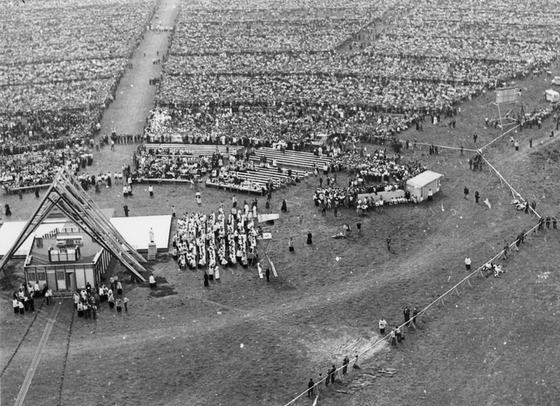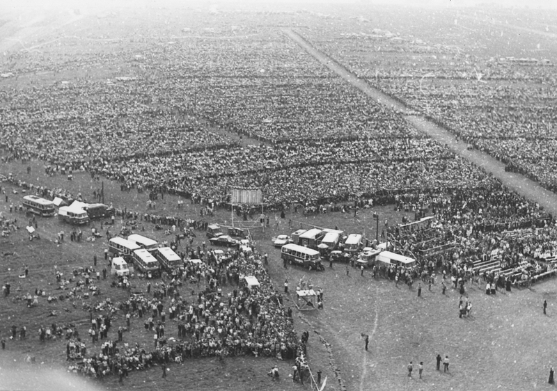 Obserwacja operacyjna SB – lotnisko i Nowy Targ w dniu spotkania z papieżem Janem Pawłem II 8 czerwca 1979 r. Zdjęcia wykonane ze śmigłowca Mi-2 (arch. IPN). -