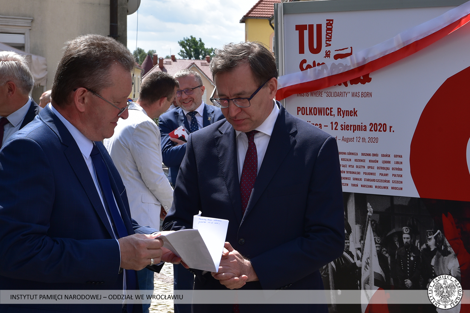 W samo południe prezes IPN dr Jarosław Szarek uroczyście otworzył w Polkowicach wystawę „Tu rodziła się Solidarność”. 40 lat temu polkowicki Zakład Górniczy „Rudna” był największym centrum protestu w dawnym województwie legnickim. Od 27 sierpnia do 1 września 1980 r. trwał strajk koordynowany przez Międzyzakładowy Komitet Strajkowy. Górnicy poparli 21 postulatów gdańskich, sformułowali także własne i wynegocjowali z władzami porozumienie dla pracowników górnictwa i hutnictwa miedzi.