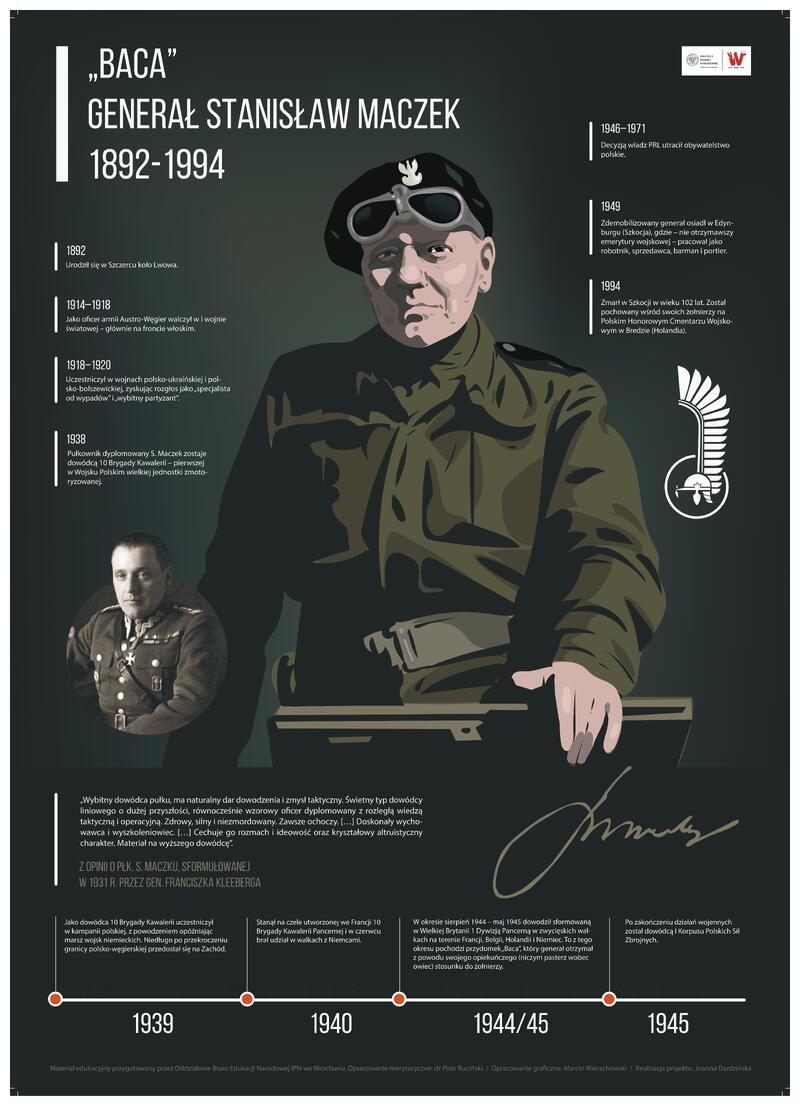 W związku z rocznicą śmierci gen. Stanisława Maczka Oddziałowe Biuro Edukacji Narodowej IPN we Wrocławiu przygotowało infografikę, poświęconą jego biografii. Zachęcamy do jej pobierania, czytania i oglądania, a także dalszych studiów nad tą postacią. Warto!