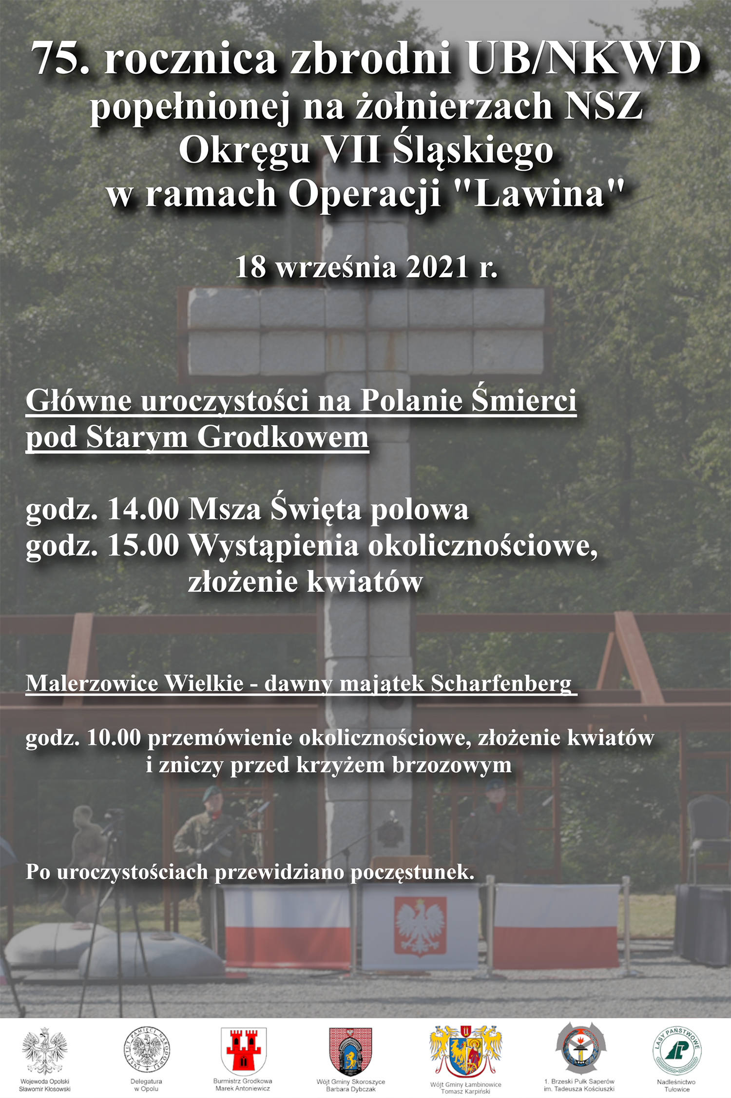 W miejscu dawnego majątku Scharfenberg zastępca prezesa IPN dr hab. Krzysztof Szwagrzyk przypomniał tragiczne losy żołnierzy, którzy nie godzili się z uzależnieniem Polski od ZSRS i chcieli opuścić kraj, aby nadal walczyć o jego wolność. W drodze na Zachód, pewnego wrześniowego wieczoru 1946 roku, do pałacu Scharfenberg niedaleko Malerzowic Wielkich przyjechało ich z Podbeskidzia ok. 30. Mieli nadzieję, że kolejną noc spędzą już poza sowiecką strefą wpływów, w wolnym świecie. Nad ranem zostali zaatakowani przez UB i NKWD i po krótkiej walce ujęci, a następnie pojedynczo – jeden po drugim i na oczach jeszcze żyjących – strzałem w potylicę zamordowani. Uratowało się tylko dwóch z nich – jeden, mając nadzieję, że oprawcy już odeszli, opuścił kryjówkę na strychu, został jednak schwytany i także zamordowany.