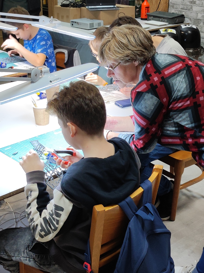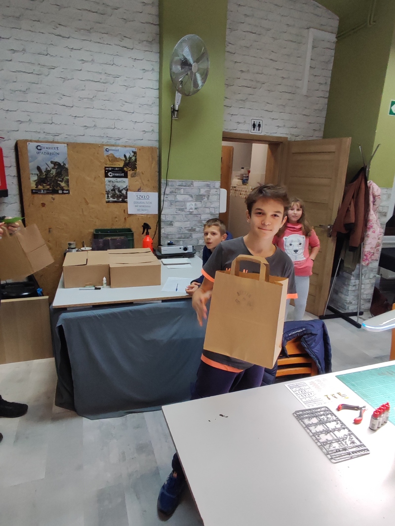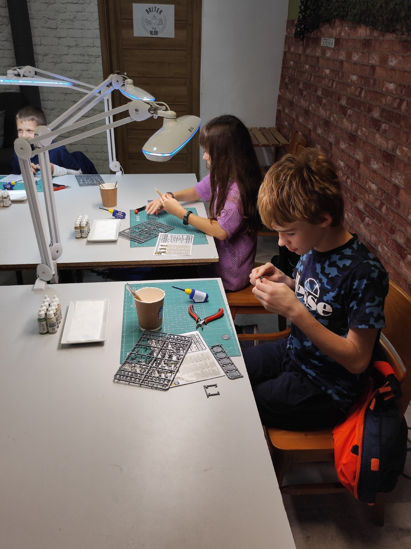 W środę w Bolterze spotkali się ponownie (choć już zupełnie inni!) warsztatowicze najmłodsi. Śpiewająco – bez jakiegokolwiek potknięcia – przeszli oni próbę quizu „Bitwa o Bolonię – ostatnia krew” i z pasją zagłębili się w gąszcz modelarskich wyzwań. Jak zwykle wsparciem i poradą służyli, prócz bolterowskiego instruktora, także opiekunowie. Dodatkową atrakcją dla obecnych był fakt, że w sali obok rozgrywano właśnie drugą bitwę z cyklu „Wacht am Rhein – Ardeny 1944”.