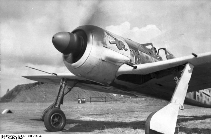 1. Focke-Wulf Fw 190 A z II./JG 1 w 1942 roku. Bardzo podobne maszyny wzięły udział w ataku na lotnisko 131. Skrzydła Myśliwskiego. Źródło: Wikimedia Commons;