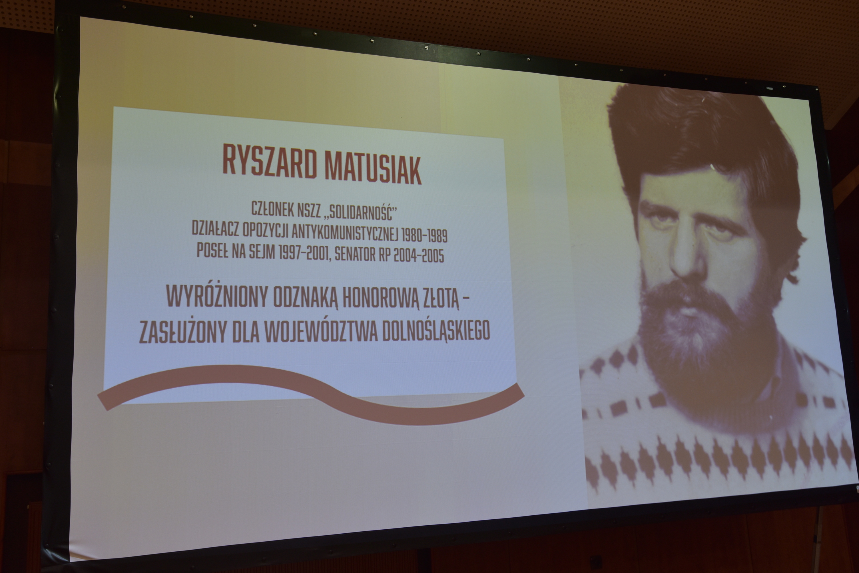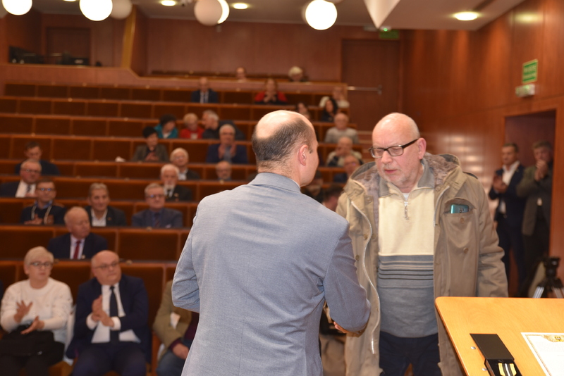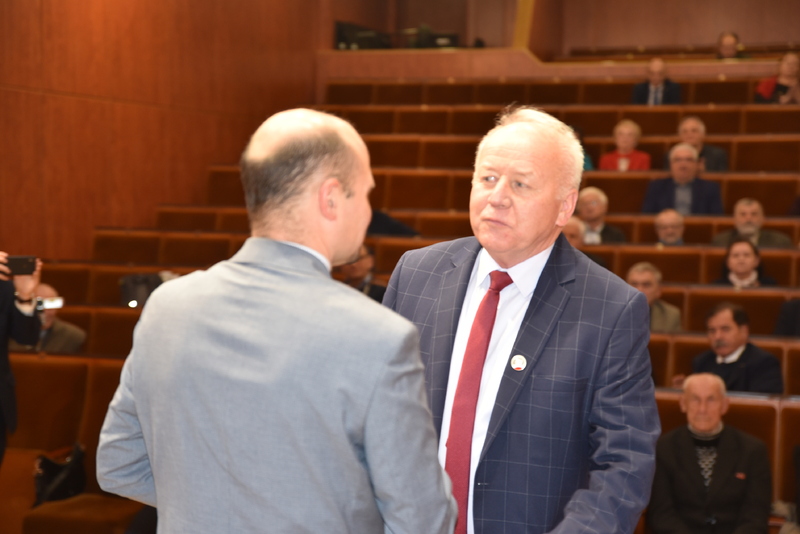 Następnie honorową, złotą odznakę "Zasłużony dla województwa dolnośląskiego" z rąk Andrzeja Kredkowskiego - wiceprzewodniczącego Sejmiku Województwa Dolnośląskiego odebrał Ryszard Matusiak - były poseł i senator, ale przede wszystkim zasłużony opozycjonista lat 1980-1989.