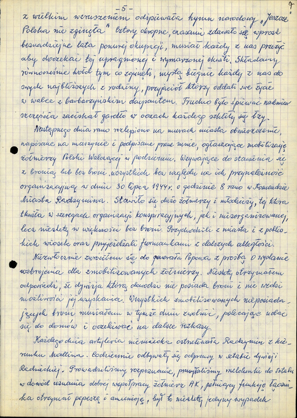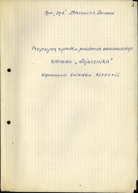 Powstanie warszawskie we wspomnieniach świadka wydarzeń ppor. Leonarda Stacewicza ps. „Sęk”, byłego dowódcy placówki Armii Krajowej kryptonim „Raźno” - Radzymin.
