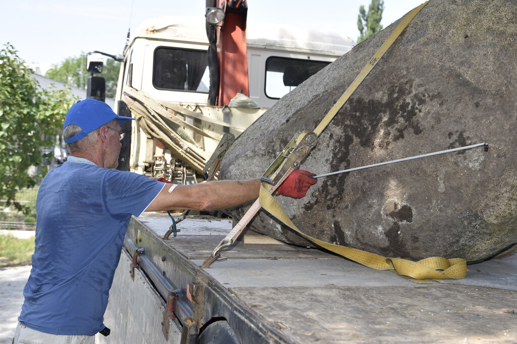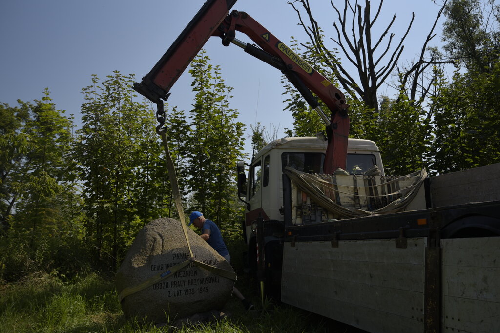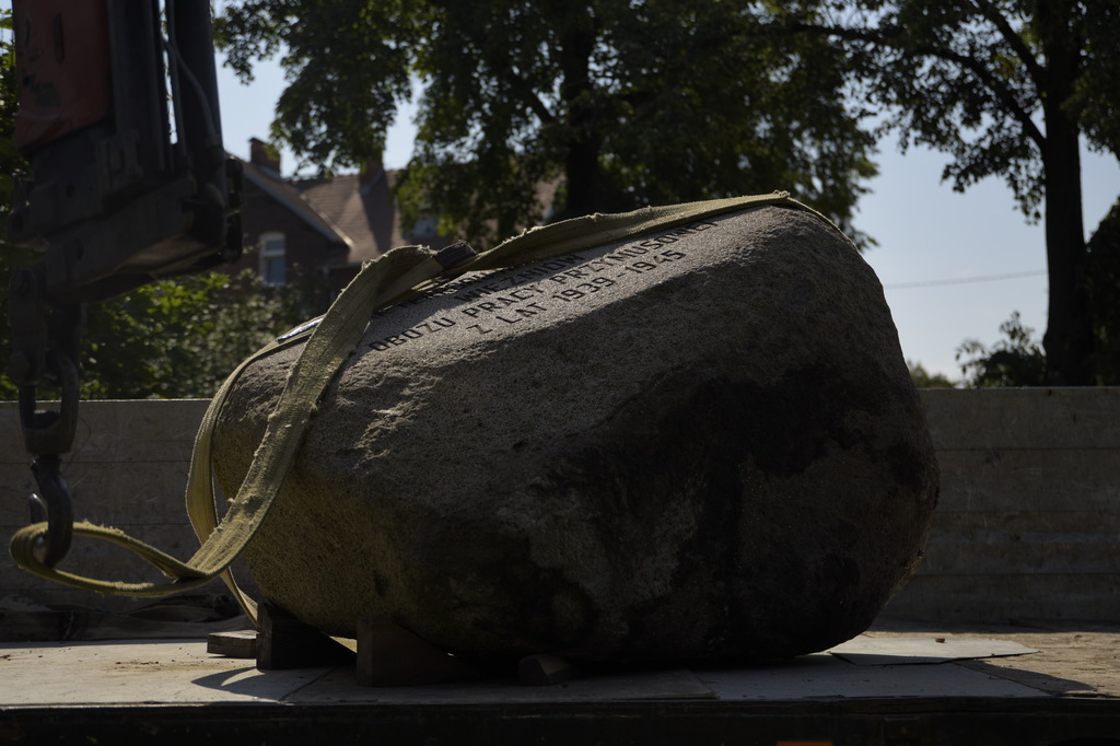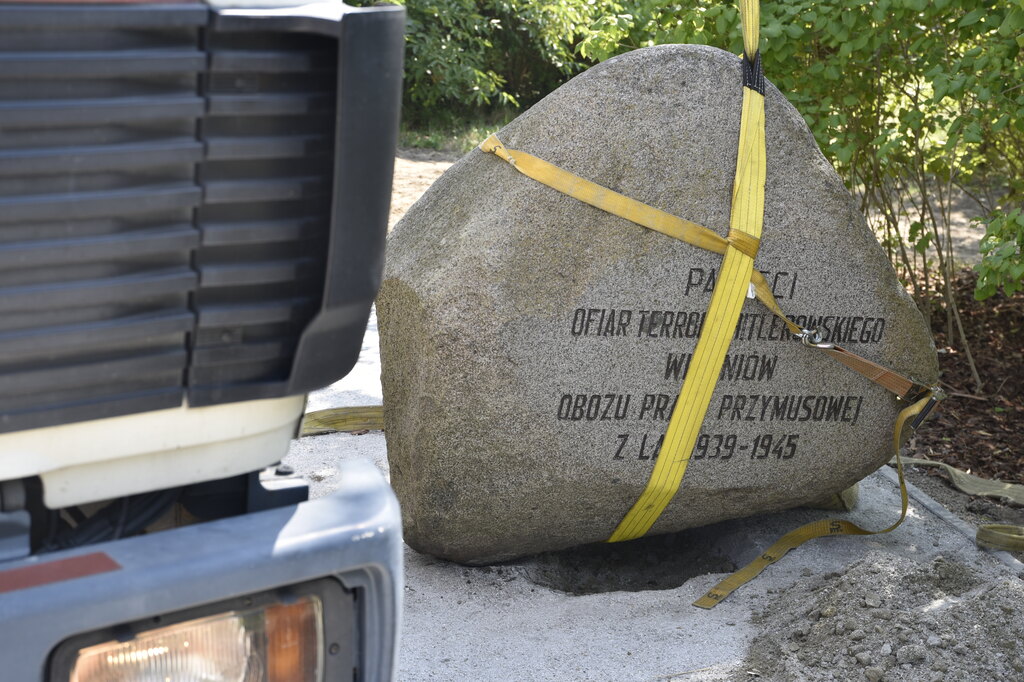 W środę 16 sierpnia 2023 roku pomnik został przeniesiony na teren poobozowy, nieopodal filii nr 19 Miejskiej Biblioteki Publicznej, i stanął w miejscu, gdzie niegdyś znajdował się jeden z baraków mieszkalnych. W ten sposób nie tylko spełniono życzenie środowiska byłych robotników przymusowych, ale również zainicjowano stworzenie nowej przestrzeni – ponad skweru, który będzie upamiętniał ofiary obozu Burgweide. Wyznaczony przez władze miejskie Wrocławia teren to ponad jednohektarowy zazieleniony obszar. Na przełomie lipca i sierpnia został uprzątnięty przez Zarząd Zieleni Miejskiej, który również wytyczył i przygotował nowe miejsce pod pomnik. Koordynowana przez wrocławski oddział Instytut Pamięci Narodowej akcja przeniesienia pamiątkowego głazu trwała ponad trzy godziny. Wkrótce obok niego stanie tablica informacyjna, która przybliży historię obozu i tego miejsca pamięci.