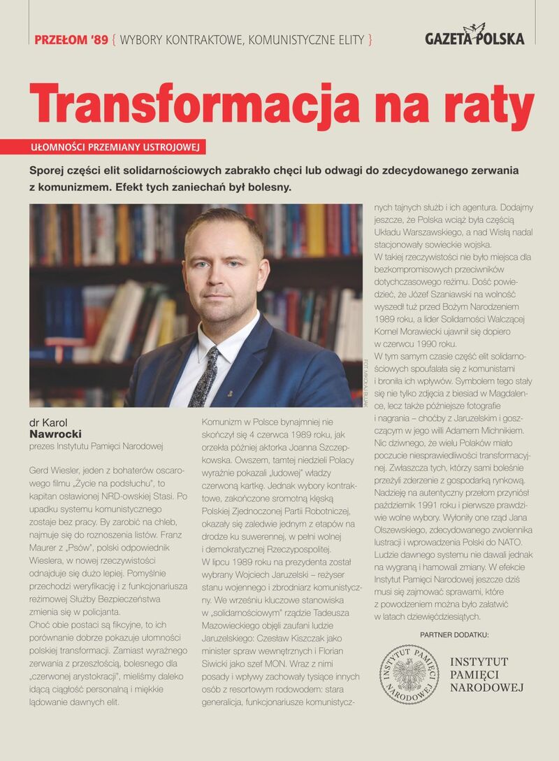 „Przełom ’89. Transformacja na raty” – dodatek specjalny Instytutu Pamięci Narodowej do „Gazety Polskiej”