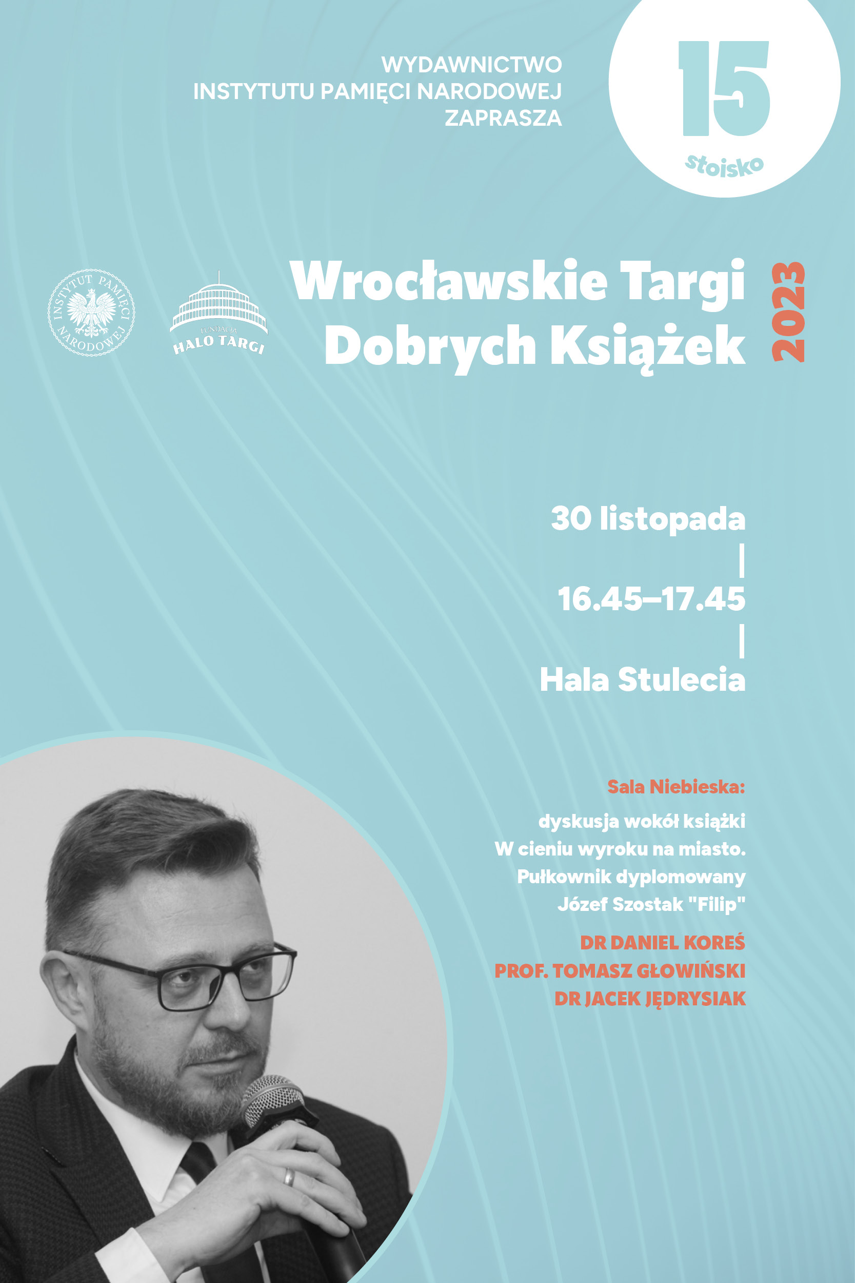 30.11.2023 godz. 16.45 sala niebieska – Dyskusja o wokół książki „W cieniu wyroku na miasto. Pułkownik dyplomowany Józef Szostak „Filip”