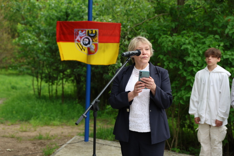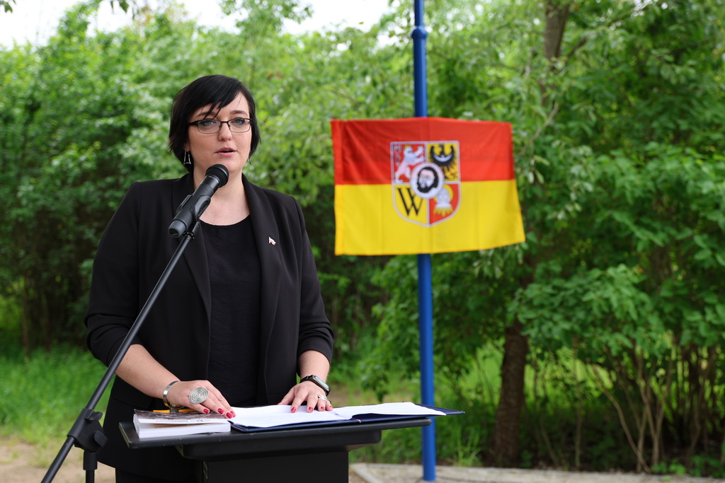 - To tutaj, w tym największym obozie wojennego Wrocławia zawisła długo oczekiwana biało-czerwona flaga, która Polakom dała nadzieję na lepsze jutro. To tutaj swoje kroki skierował pierwszy powojenny prezydent Wrocławia, który oświadczył zebranym tu polskim robotnikom przymusowym, że wojna dobiegła końca. Poinformował, że Wrocław będzie polskim miastem, a oni powinni pozostać w nim i je odbudować. Wielu skorzystało z propozycji. Chciałabym podziękować szczególnie tym, którzy w ostatnim czasie uczynili wiele, aby przywrócić temu miejscu należną mu pamięć. Bez determinacji IPN-u nie byłoby tego pomnika i skweru. Wierzę, że jak już nas nie będzie, wy nadal będziecie pamiętać o nas i o tym, czego doświadczyliśmy. Mam nadzieję, że ta tabliczka z nazwą skweru sprawi, że mieszkańcy Wrocławia, a zwłaszcza Sołtysowic, nie zapomną o losach tych, którzy tu byli przetrzymywani, którzy tu zginęli i tych, którzy przeżyli, ale pobyt w obozie odcisnął na nich niezatarte piętno. Pragnę też zachęcić młodzież, która będzie mieć wpływ na zarządzanie miastem w przyszłości, by uczyniła wszystko, aby to miejsce przypominało o naszych cierpieniach, a jednocześnie stało się przestrogą dla przyszłych pokoleń.