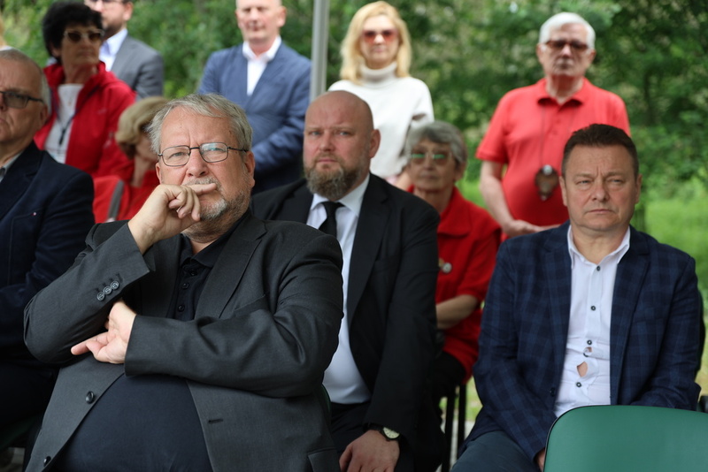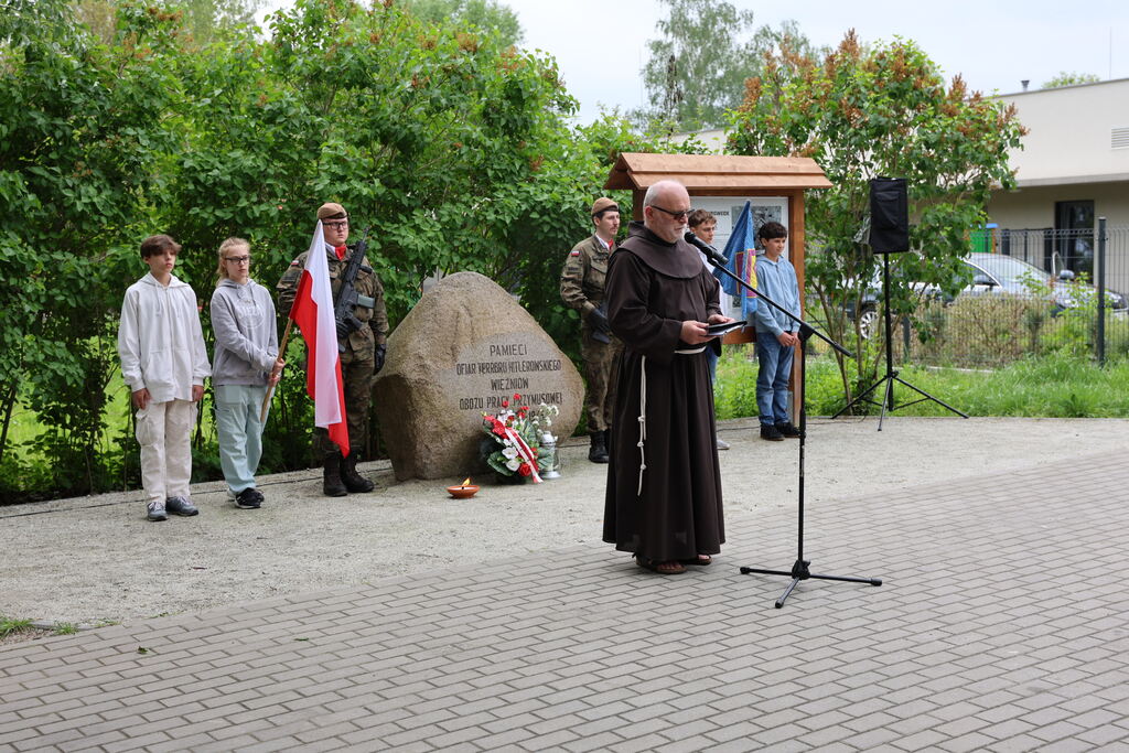 Prowadząca uroczystość przekazała także słowa od przewodniczącego Zarządu Rady Osiedla Sołtysowice Piotra Wyborskiego. Rada Osiedla Sołtysowice już od dłuższego czasu współpracuje z Instytutem Pamięci Narodowej w zakresie rozmaitych działań wokół tematu obozu Burgweide i mamy nadzieję, że tak będzie nadal. Nieustannie wspierają działania Instytutu Pamięci Narodowej także Ojcowie Franciszkanie z lokalnej parafii św. Alberta Wielkiego, której proboszczem jest ojciec Faustyn Zatoka.
