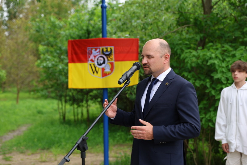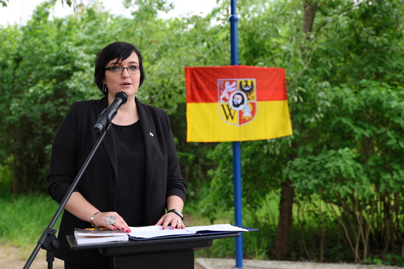 - Ten skwer, przy którym się znajdujemy, a który częściowo mieści się na terenie byłego niemieckiego obozu przejściowego i obozu pracy Burgweide, decyzją Rady Miejskiej Wrocławia z dnia 18 kwietnia bieżącego roku otrzymał nazwę SKWER OFIAR OBOZU BURGWEIDE. W ten sposób władze miejskie Wrocławia przychyliły się do wniosku złożonego przez Oddział Instytutu Pamięci Narodowej we Wrocławiu, a wyrażającego wolę przede wszystkim środowiska byłych polskich robotników przymusowych i nas – badaczy, edukatorów i popularyzatorów historii Wrocławia. Muszą Państwo wiedzieć, że poprzez nadanie temu skwerowi takiej właśnie nazwy został zrealizowany jeden z zapisów listu intencyjnego podpisanego we wrześniu ubiegłego roku przez Gminę Wrocław – reprezentowaną przez Prezydenta Wrocławia Jacka Sutryka – oraz Instytut Pamięci Narodowej reprezentowany przez obecnego wśród nas dyrektora Kamila Dworaczka. W liście tym obie strony zobowiązały się do podjęcia rozmaitych działań, których celem ma być stworzenie tu – na terenie tego skweru – miejsca pamięci o ofiarach obozu Burgweide, tak bowiem stanowi obowiązujący od 2016 roku miejscowy plan zagospodarowania przestrzennego – mówiła prowadząca uroczystość Kamilla Jasińska z Oddziałowego Biura Edukacji Narodowej IPN we Wrocławiu.
