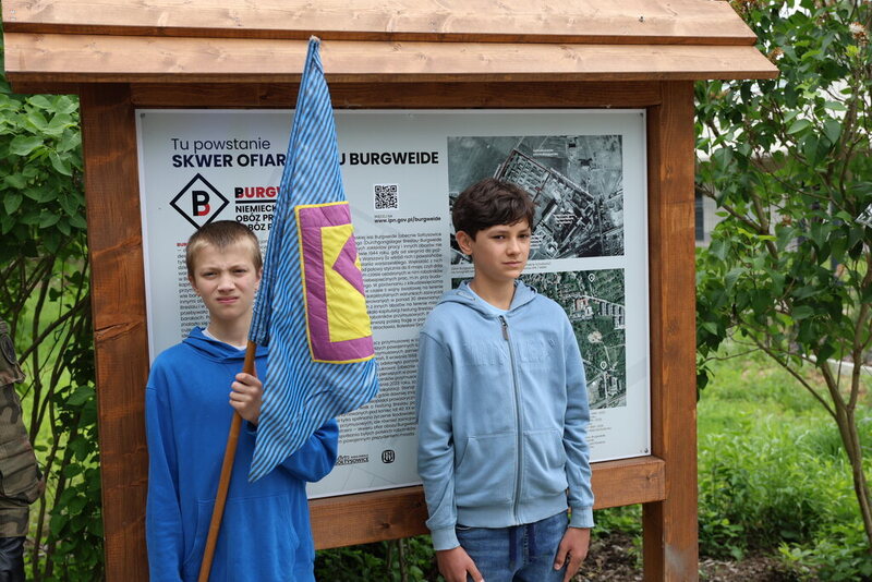 Po odsłonięciu tabliczki z nazwą skweru pod pomnikiem złożone zostały kwiaty. Po zakończeniu oficjalnej części spotkania chętni mogli zwiedzić teren poobozowy z przewodniczką, która krótko opowiadała o historii tego miejsca. Burgweide to bowiem miejsce-symbol, w którym kilkanaście tysięcy cudzoziemskich robotników przymusowych - w tym kilka tysięcy Polaków - doczekało końca wojny. W mieście działania wojenne ustały, Festung Breslau skapitulowała, a nad obozem Burgweide zawisła m.in. polska flaga uszyta potajemnie przez jedną z osadzonych w obozie kobiet.
