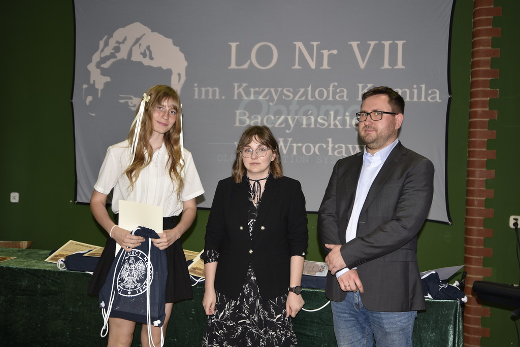 W Liceum Ogólnokształcącym nr VII im. Krzysztofa Kamila Baczyńskiego we Wrocławiu odbyło się wręczenie nagród w ramach dwóch szkolnych konkursów historycznych "Czerwone maki na Monte Cassino" oraz "Polscy Olimpijczycy. Halina Konopacka, Janusz Kusociński".