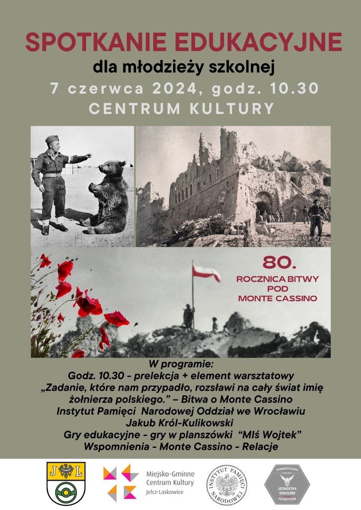 80. rocznica zwycięskiej bitwy pod Monte Cassino oraz II Korpus Wojska Polskiego pod dowództwem generała Władysława Andersa. To tematy przewodnie spotkania edukacyjnego dla szkół z terenu Miasta i Gminy Jelcz-Laskowice, które odbyło się 7 czerwca.