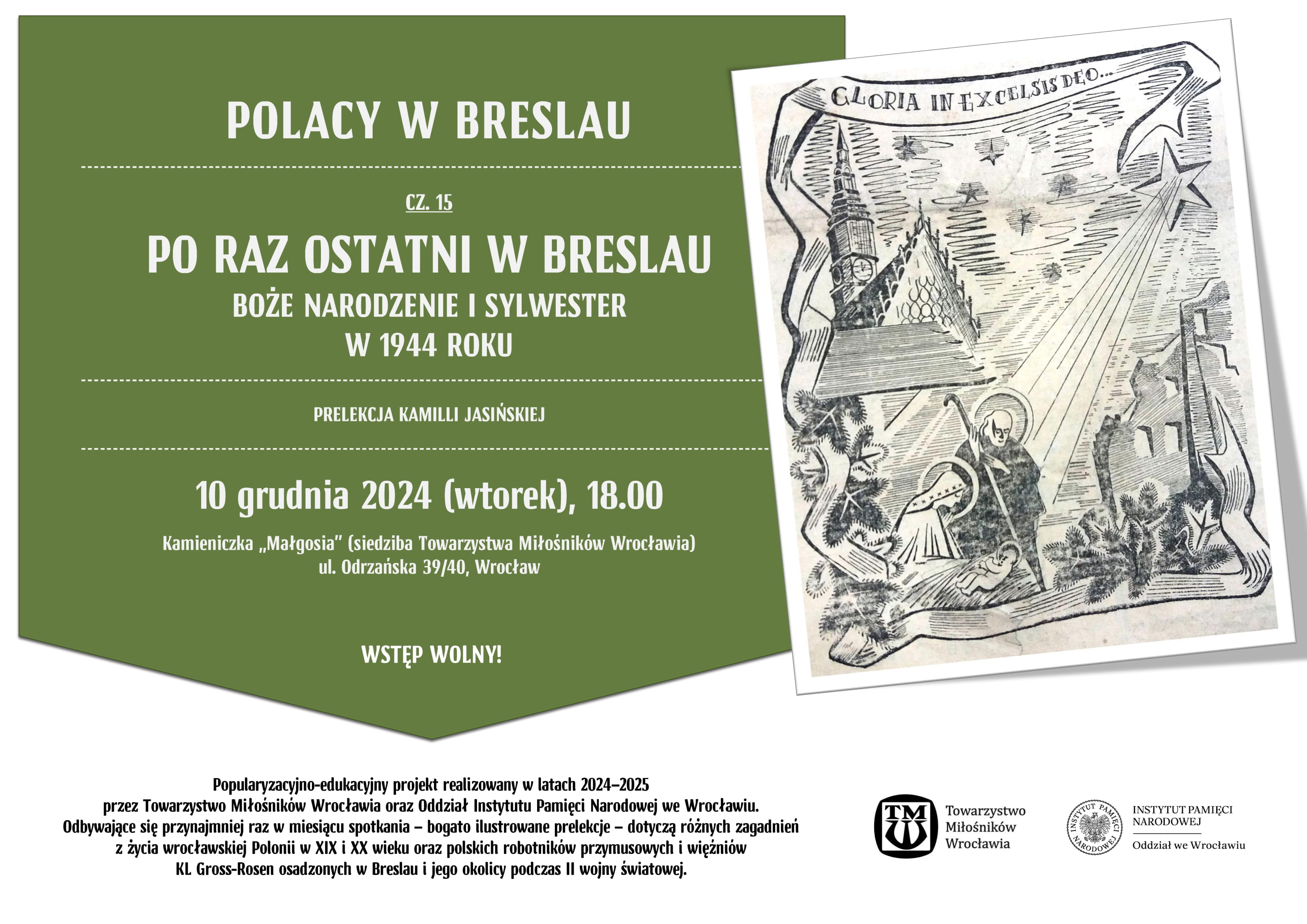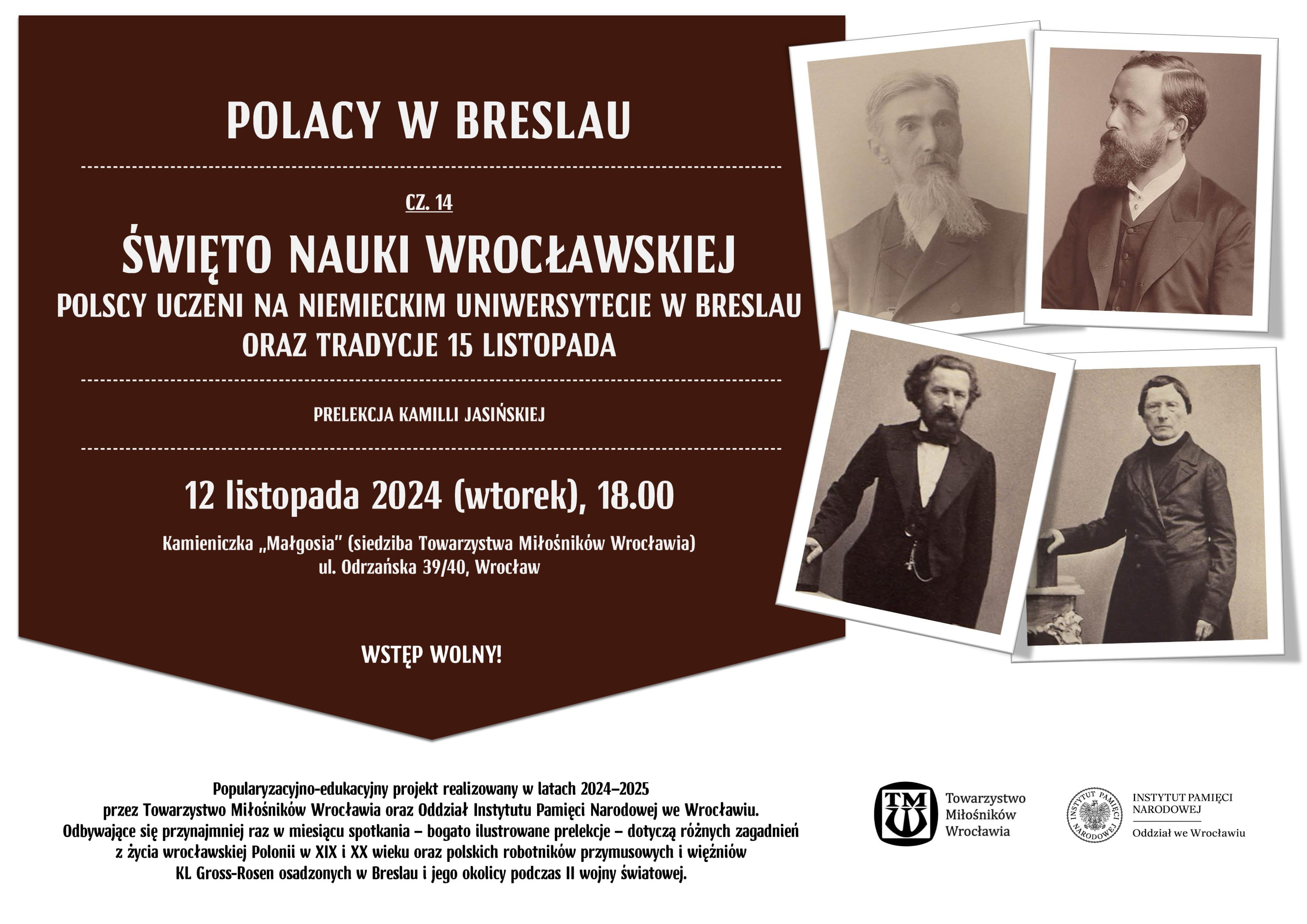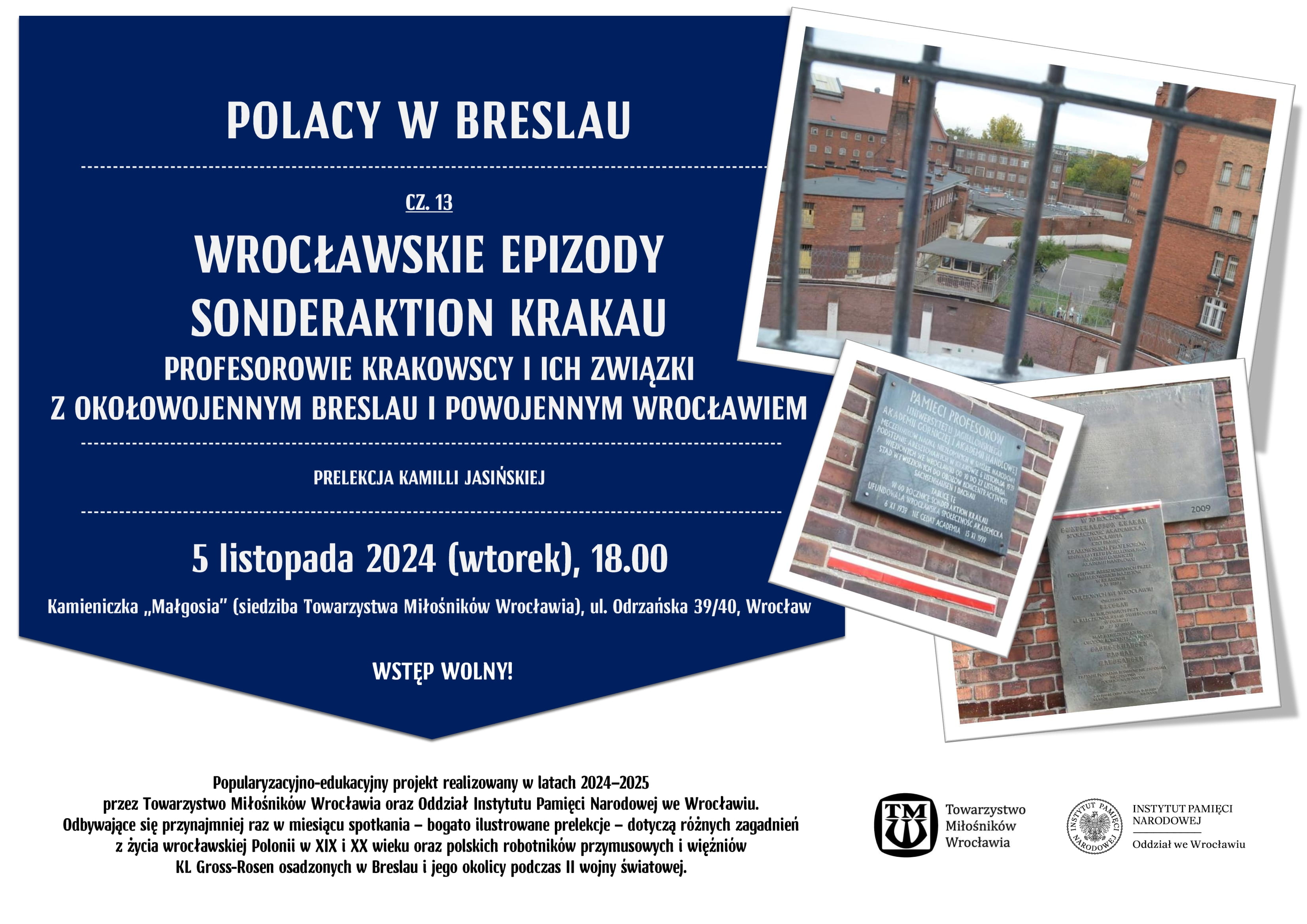 Od marca do sierpnia tego roku odbyło się dziewięć prelekcji, a do końca 2024 roku zaplanowanych zostało kolejnych sześć. Wszystkie prelekcje wygłosi Kamilla Jasińska z Oddziałowego Biura Edukacji Narodowej IPN we Wrocławiu. Tak jak te dotychczasowe, tak i następne odbędą się w kamieniczce Małgosia będącej siedzibą Towarzystwa Miłośników Wrocławia i mieszczącej się tuż przy Rynku.