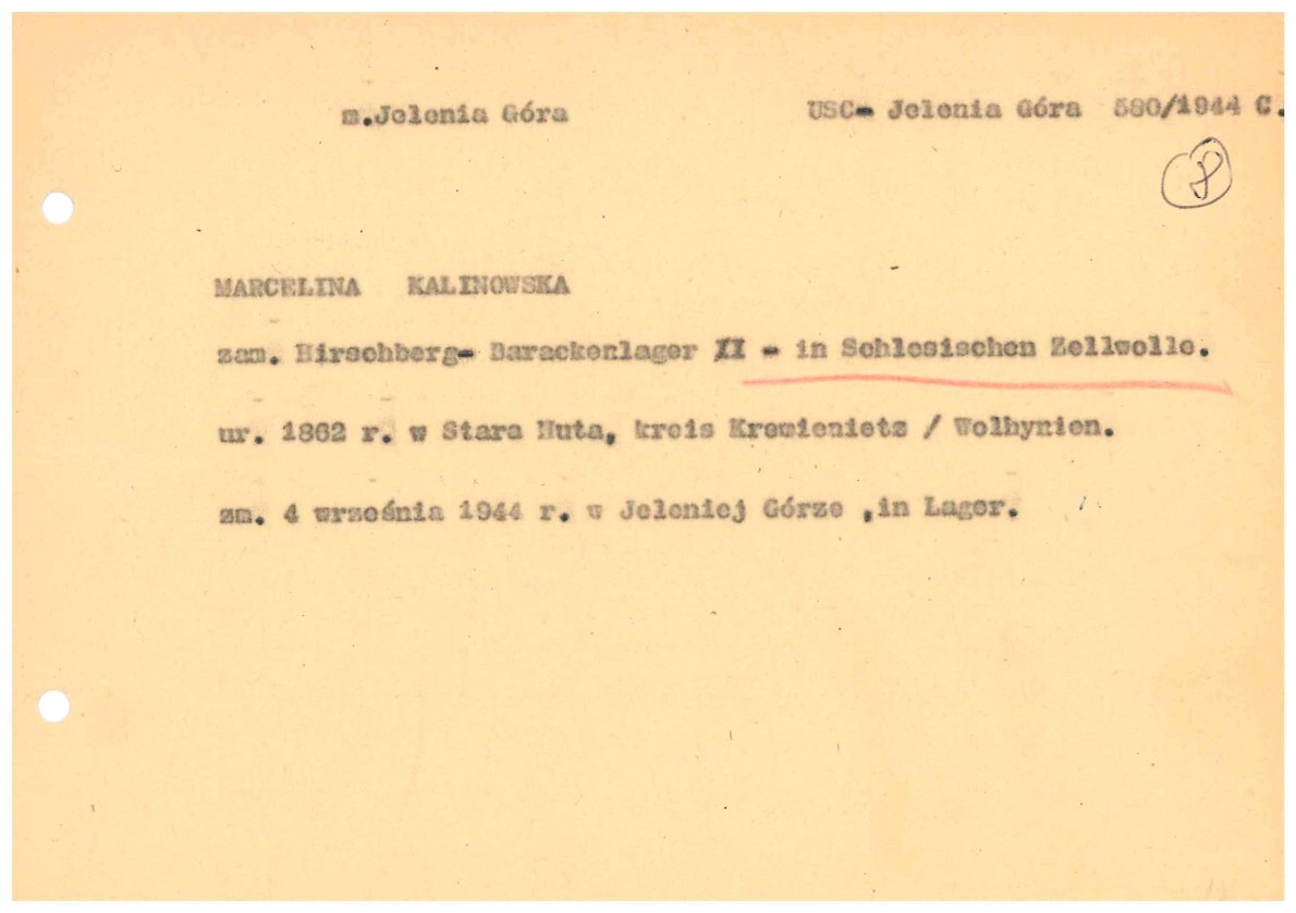 Fot. 5. Okręgowa Komisja Badania Zbrodni Hitlerowskich we Wrocławiu, Kartoteka pomocnicza dot. zgonów robotników przymusowych zarejestrowanych w księgach stanu cywilnego w Jeleniej Górze w latach 1939–1945, sygn. IPN Wr 5/8. -