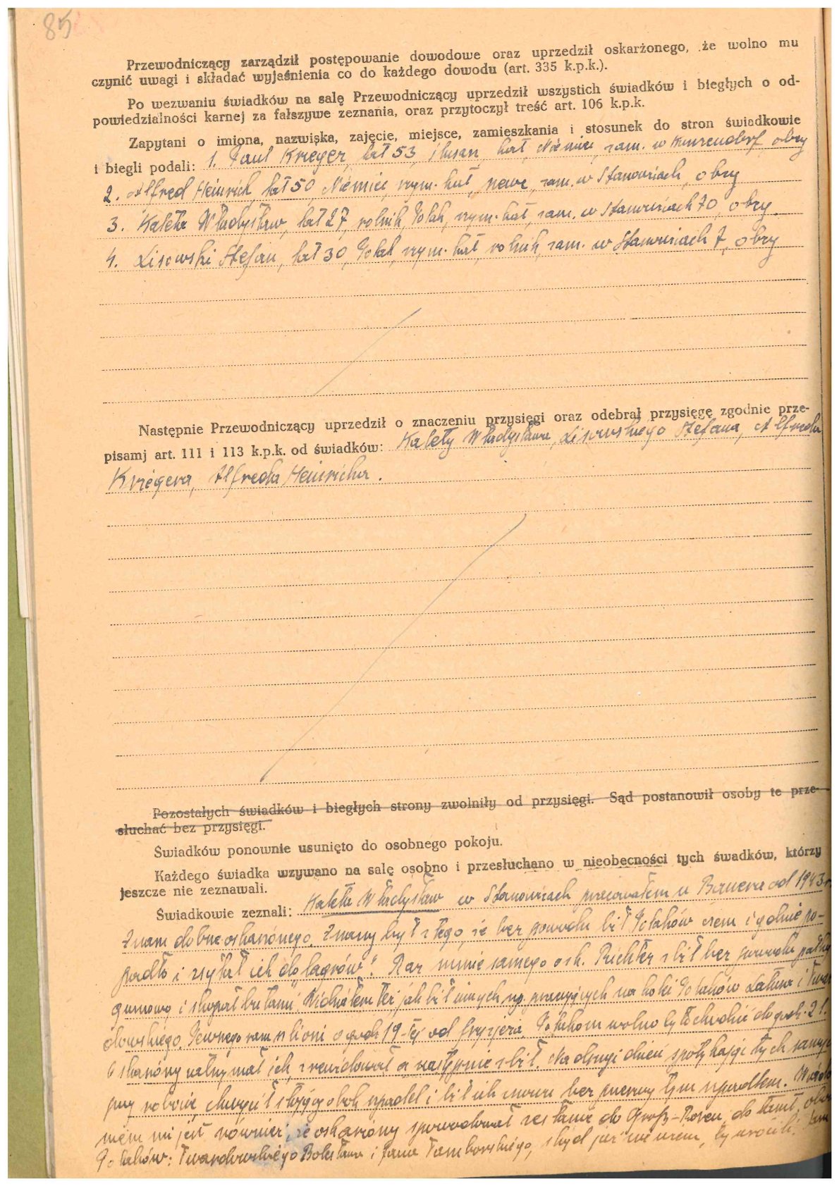 Fot. 6. Sąd Okręgowy w Świdnicy, Fragment protokołu rozprawy głównej w sprawie Alfreda Richtera, 6 II 1947 r., sygn. IPN Wr 488/1126. -