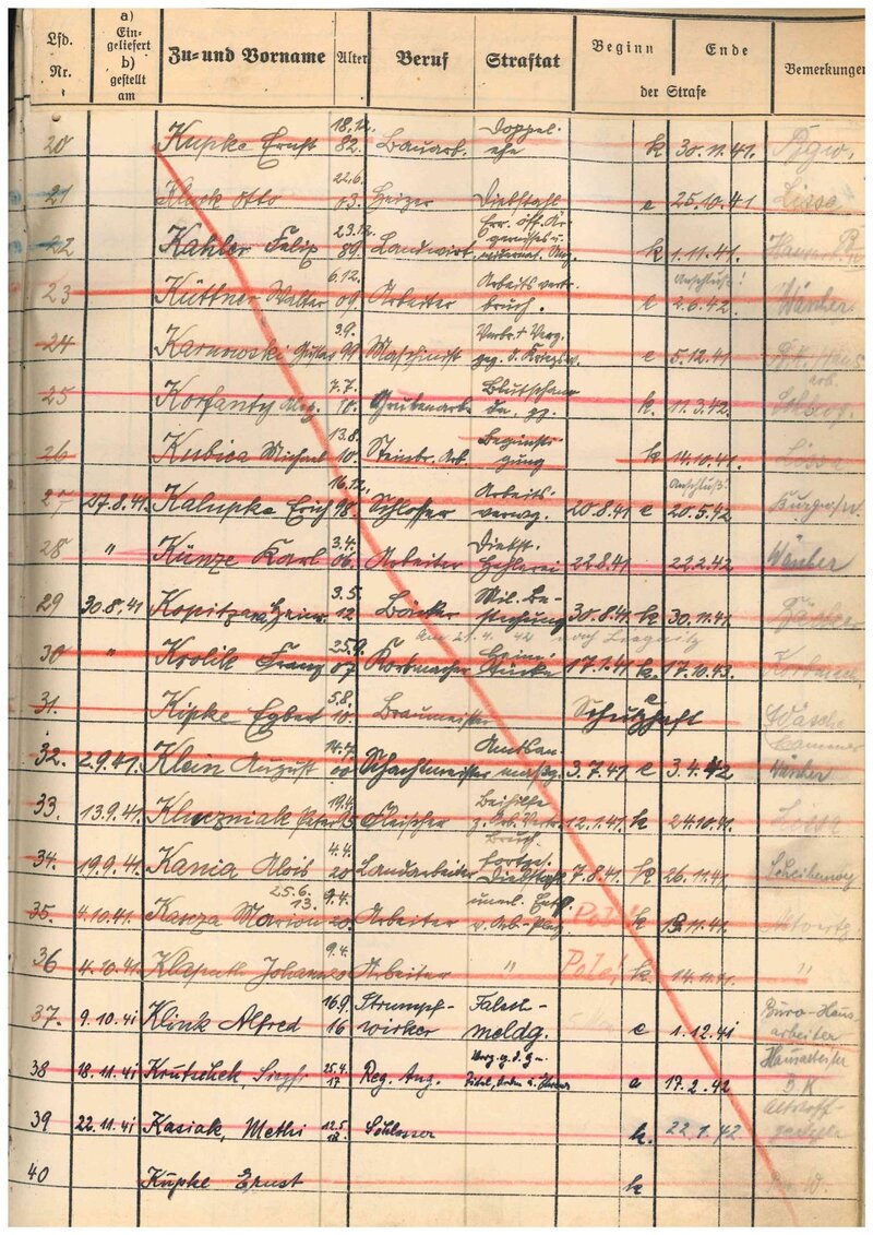 Fot. 1., Strafgefängnis Breslau, Skorowidz więźniów karnych z lat 1933–1943, sygn. IPN Wr 2/23. -