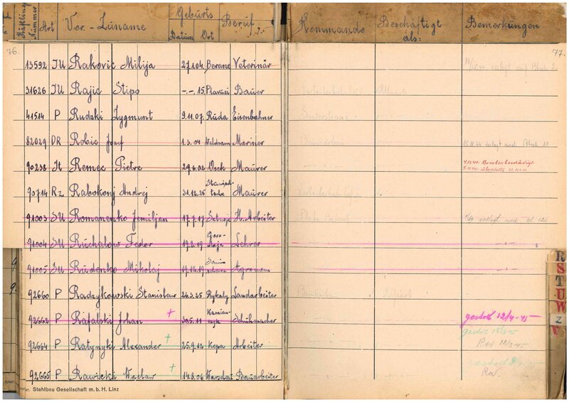 Fot. 2., Konzentrationslager Mauthausen, Skorowidz alfabetyczny więźniów bloku 13 podobozu Linz III z lat 1944–1945, sygn. IPN Wr 4/1. -