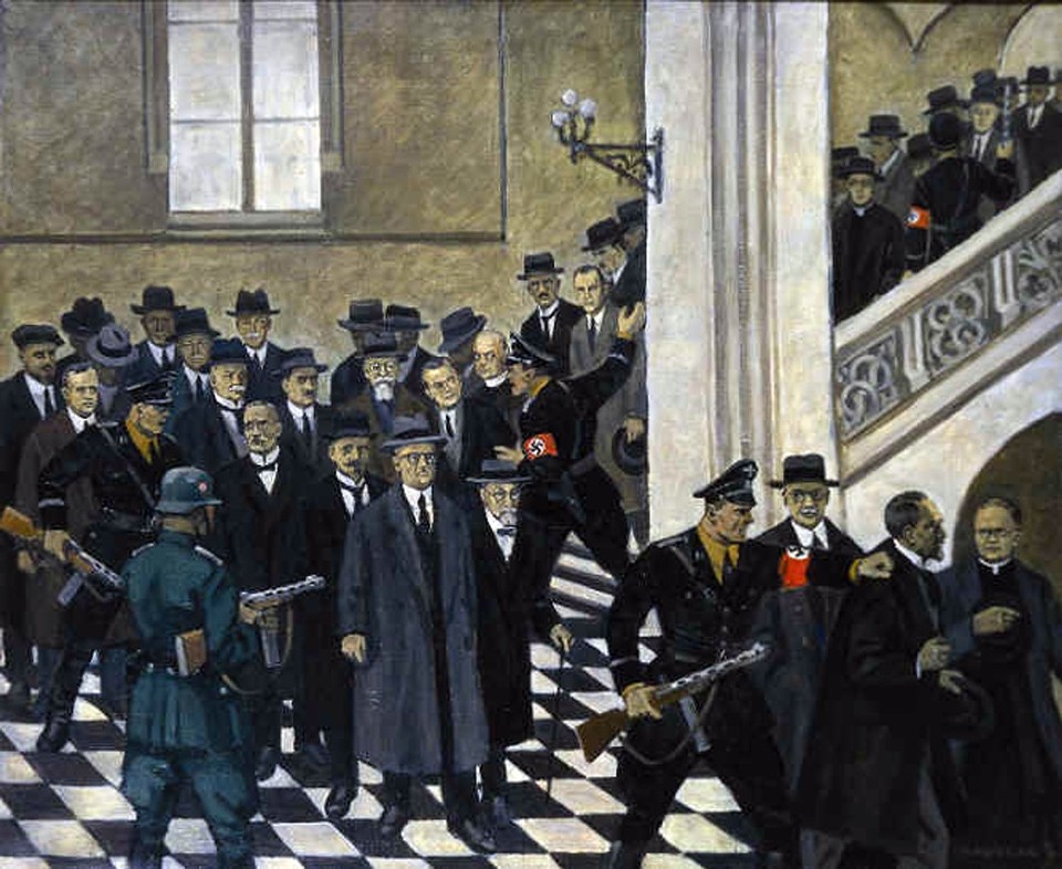 Obraz Mieczysława Wątorskiego przedstawiający wydarzenia z 6 listopada 1939 roku. Ze zbiorów Uniwersytetu Jagiellońskiego -