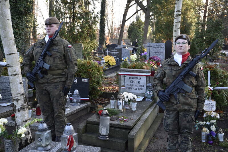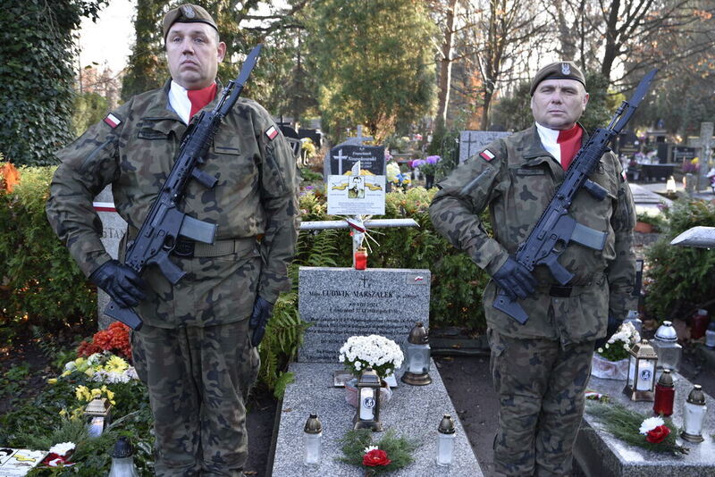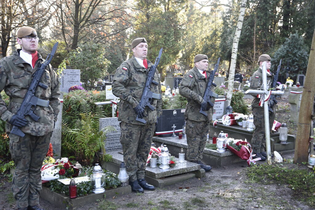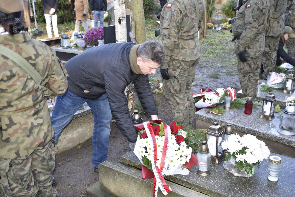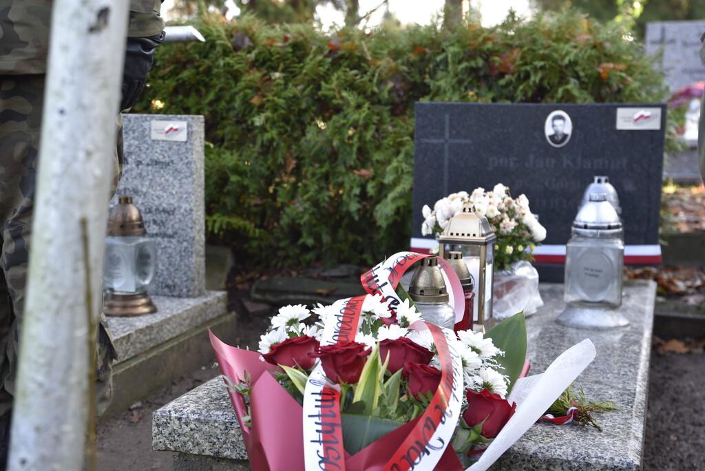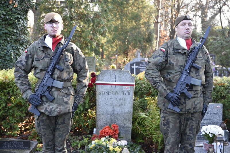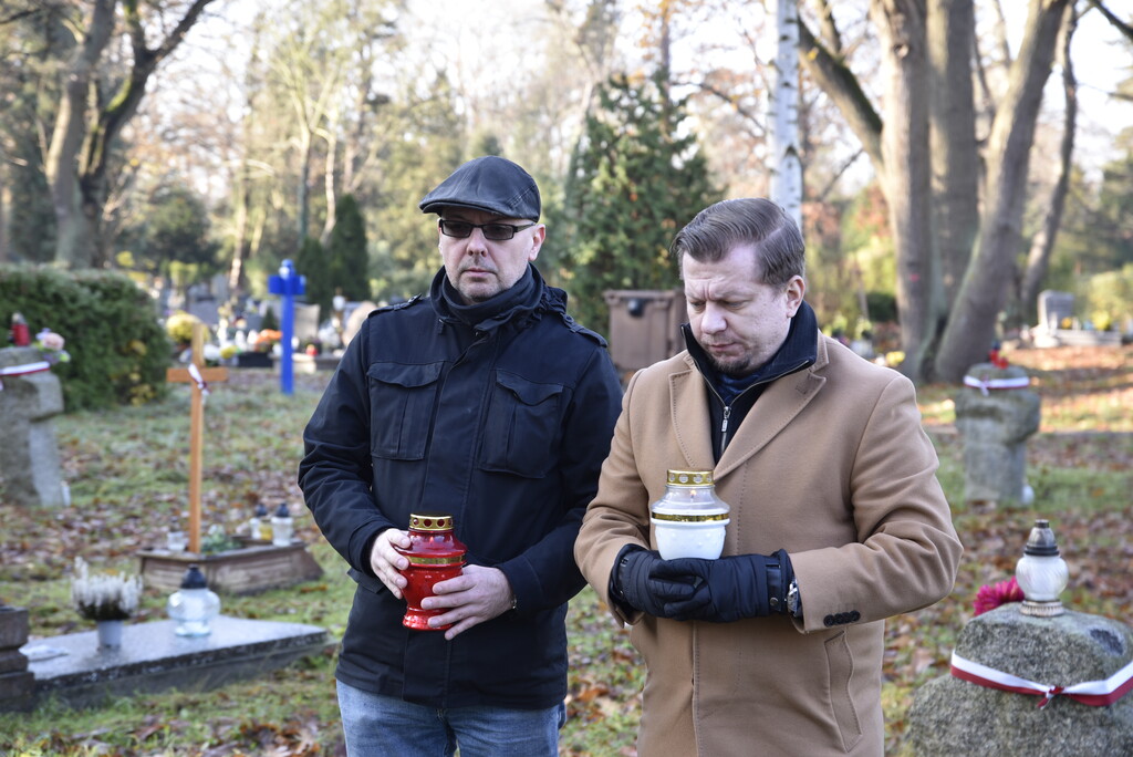 W imieniu dyrektora Oddziału IPN we Wrocławiu dr. hab. Kamila Dworaczka, w asyście honorowej żołnierzy 16. Dolnośląskiej Brygady Oborny Terytorialnej im. ppłk. Ludwika Marszałka „Zbroi” pod dowództwem płk. Edwarda Chyły, kwiaty i znicze na grobach bohaterów złożyli pracownicy naszego Oddziału: dr hab. Tomasz Balbus, dr Krzysztof Łagojda, Przemysław Mandela oraz Magda Wysocka.