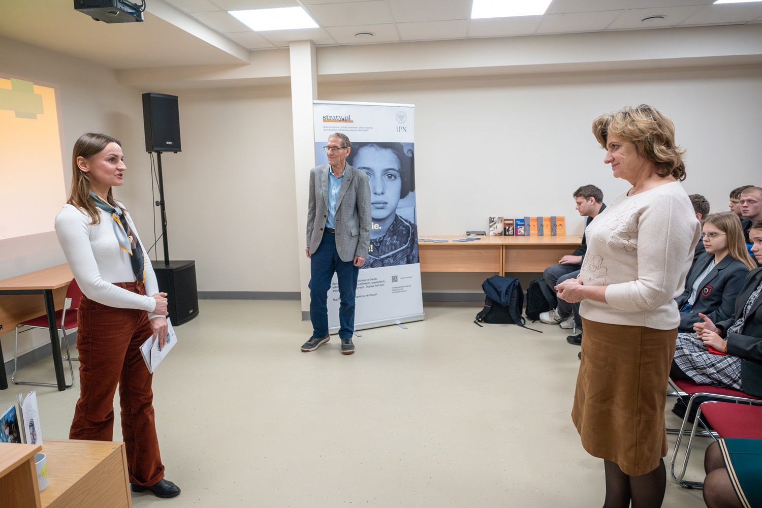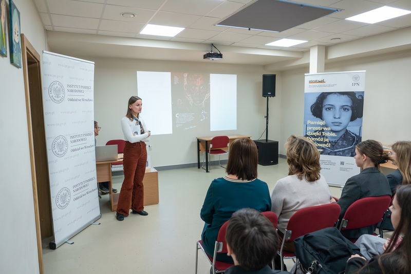 Magda Wysocka i syn pisarza prof. Władysław Tomaszewicz oprowadzili uczniów po wystawie, przeprowadzili prelekcje („Między Wilnem, Rzymem i Londynem”, „Śladami Ojca w Wielkiej Brytanii”), a także przekazali informacje i broszury dotyczące programu straty.pl. Profesor przekazał do szkolnej biblioteki książki, albumy i materiały edukacyjne ufundowane przez Wydawnictwo IPN, Oddział we Wrocławiu oraz Delegaturę w Opolu.