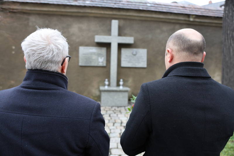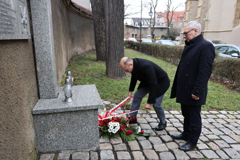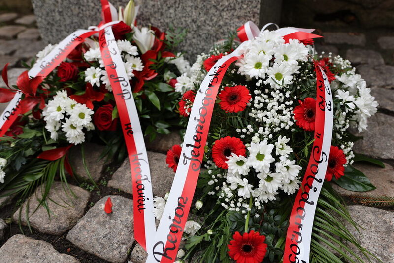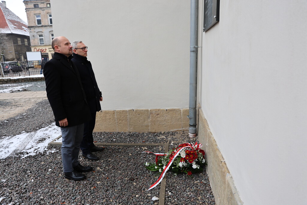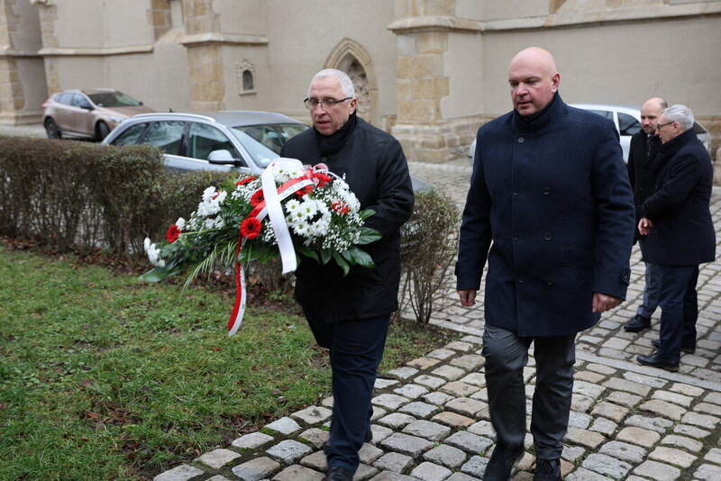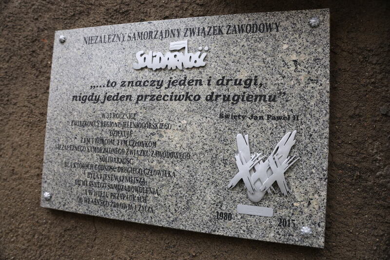 Wcześniej w siedzibie NSZZ "Solidarność" Region Jeleniogórski, obyło się spotkanie z Przewodniczącym Zarządu Regionu Franciszkiem Kopciem oraz członkiem Zarządu Pawłem Wysockim, którzy także złożyli kwiaty pod tablicą.