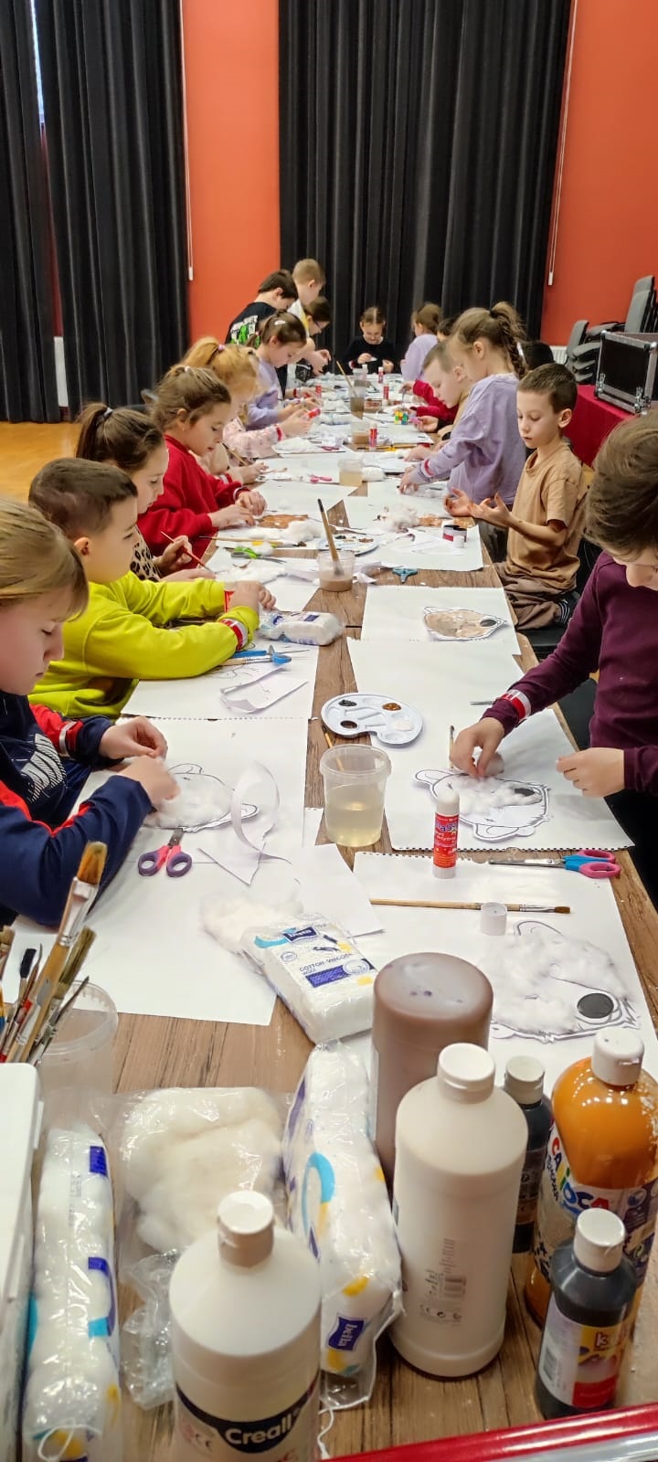 W ramach dodatkowych atrakcji, na zajęciach plastycznych dzieci mogły  tworzyć m.in maskę karnawałową Baśki – niedźwiedzicy murmańskiej czy niedźwiedzia Wojtka. Słowa Ignacego Krasickiego, osiemnastowiecznego poety nic nie straciły na swej aktualności : „Uczyć – bawiąc, bawiąc – uczyć” dobrze opisują to, co realizujemy również z najmłodszą grupą dydaktyczną w czasie ferii zimowych w dolnośląskich placówkach kultury.