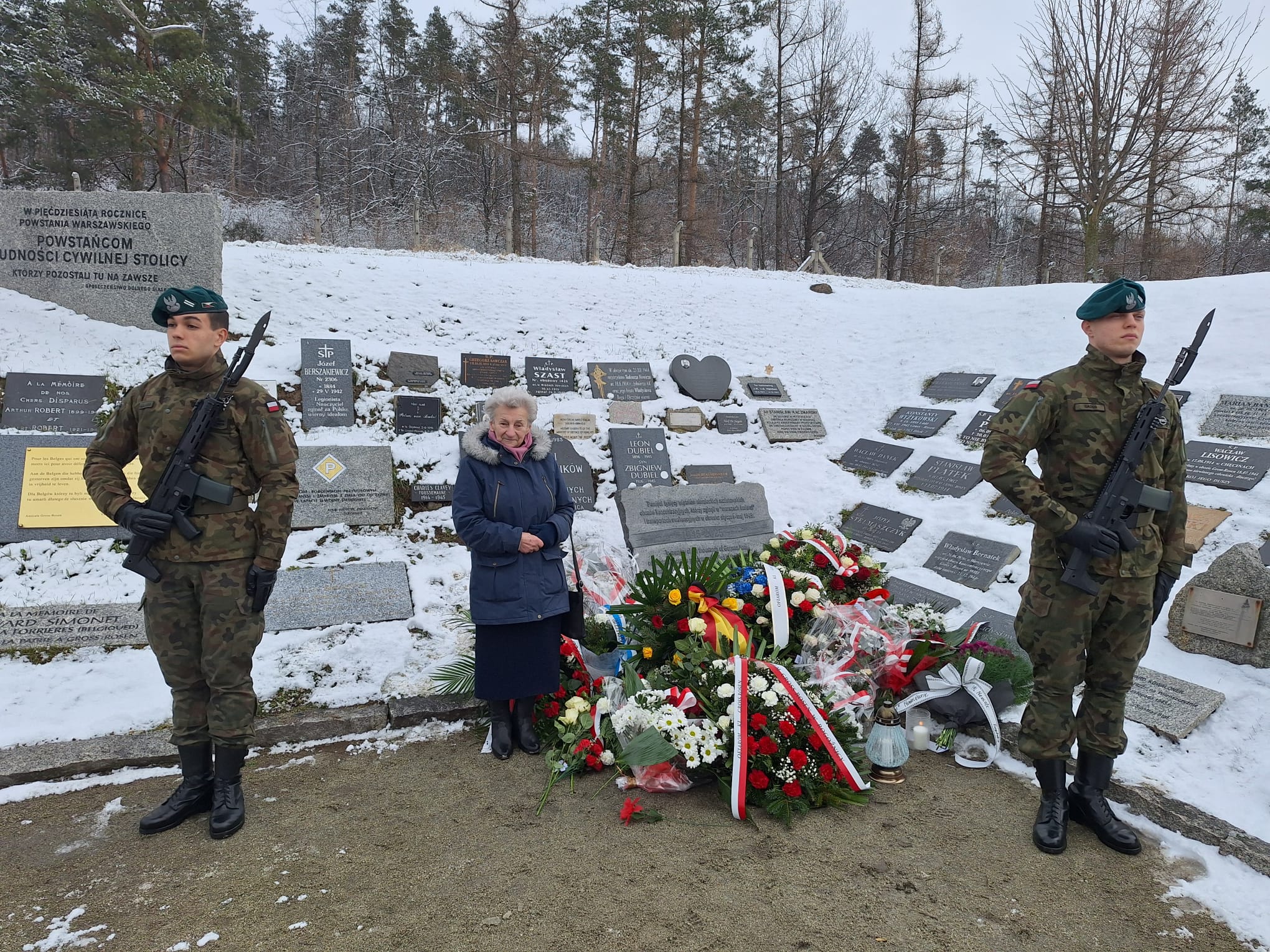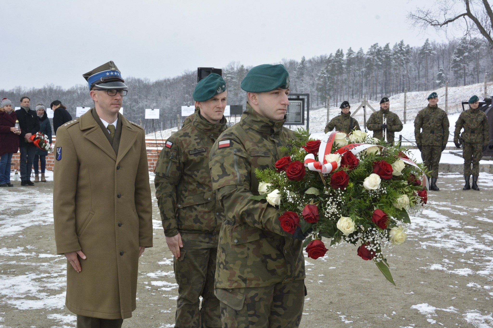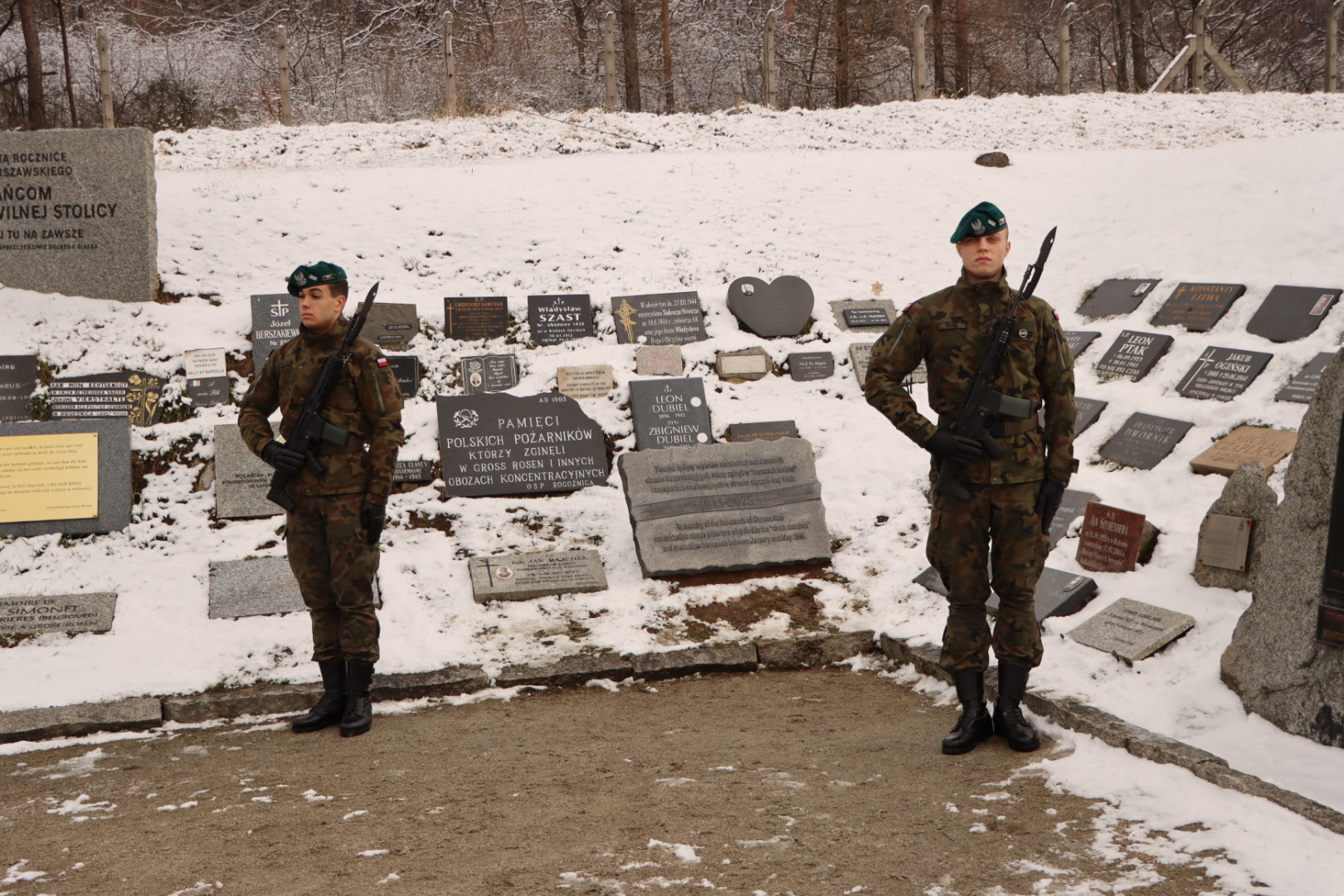 Warta honorowa przy nowej tablicy. Fot. Marcin Kaźmierski, Muzeum Gross-Rosen -