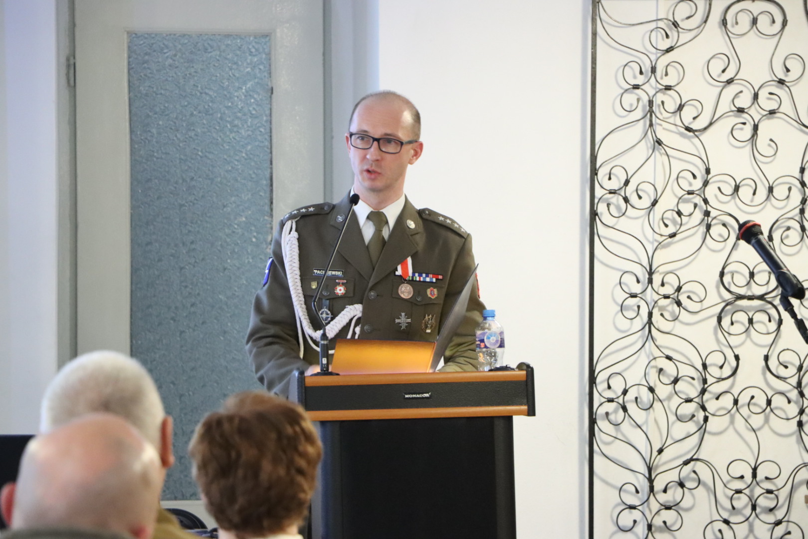 Jako pierwszy głos zabrał kpt. Arkadiusz Paciejewski z 10. Wrocławskiej Brygady Łączności, który przybliżył zebranym okoliczności powstania i odsłonięcia w październiku 2023 roku na terenie osiedla Leśnica we Wrocławiu okazałego pomnika.