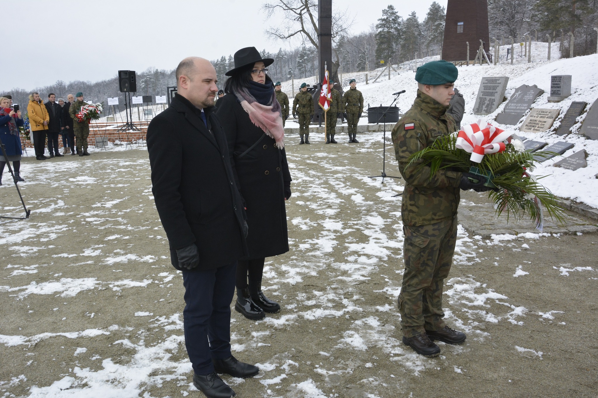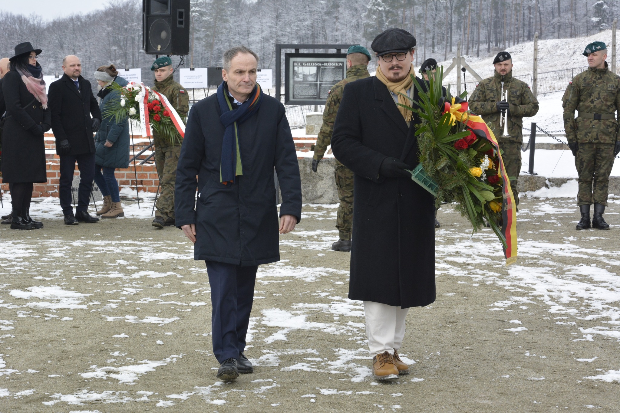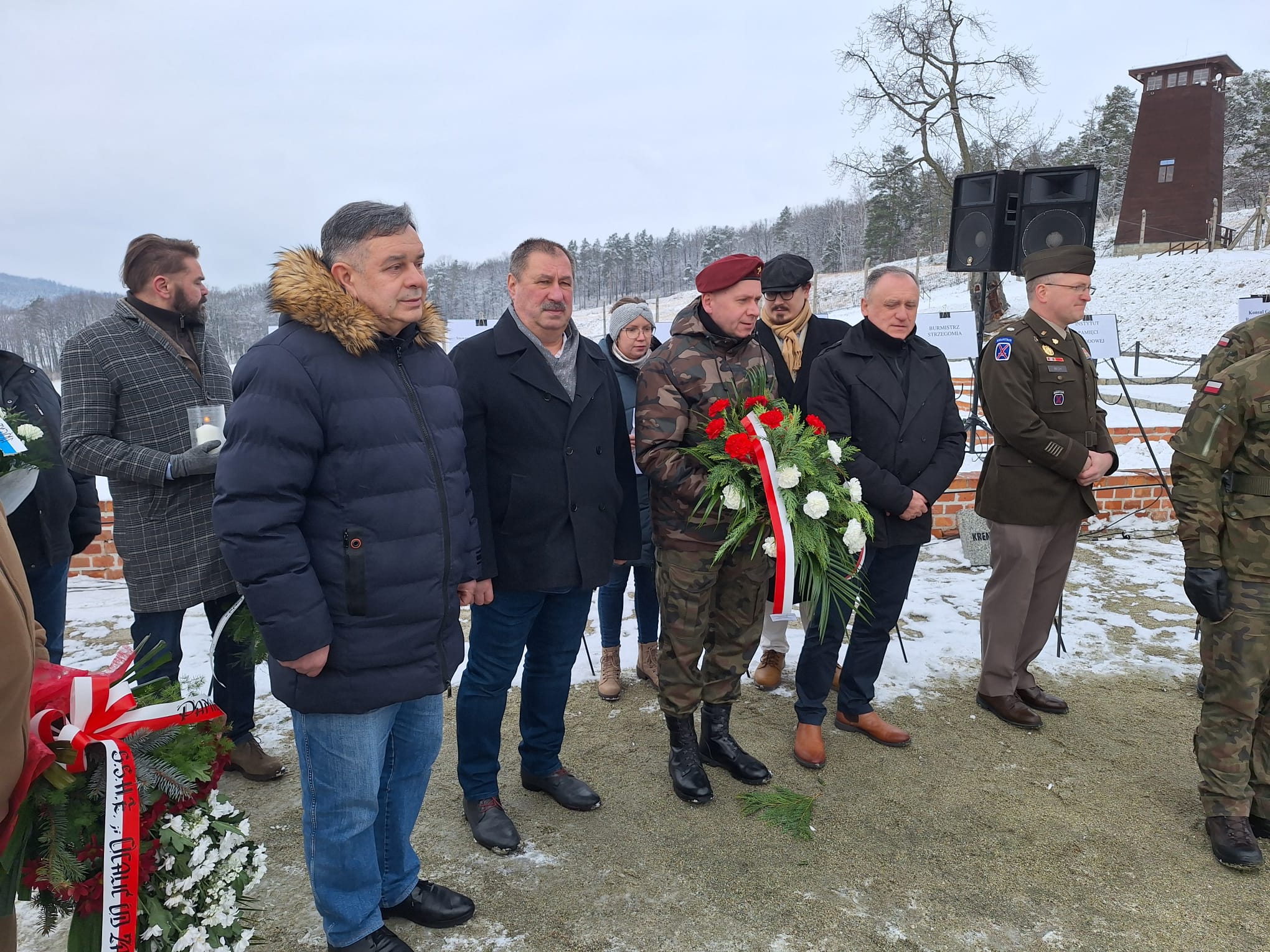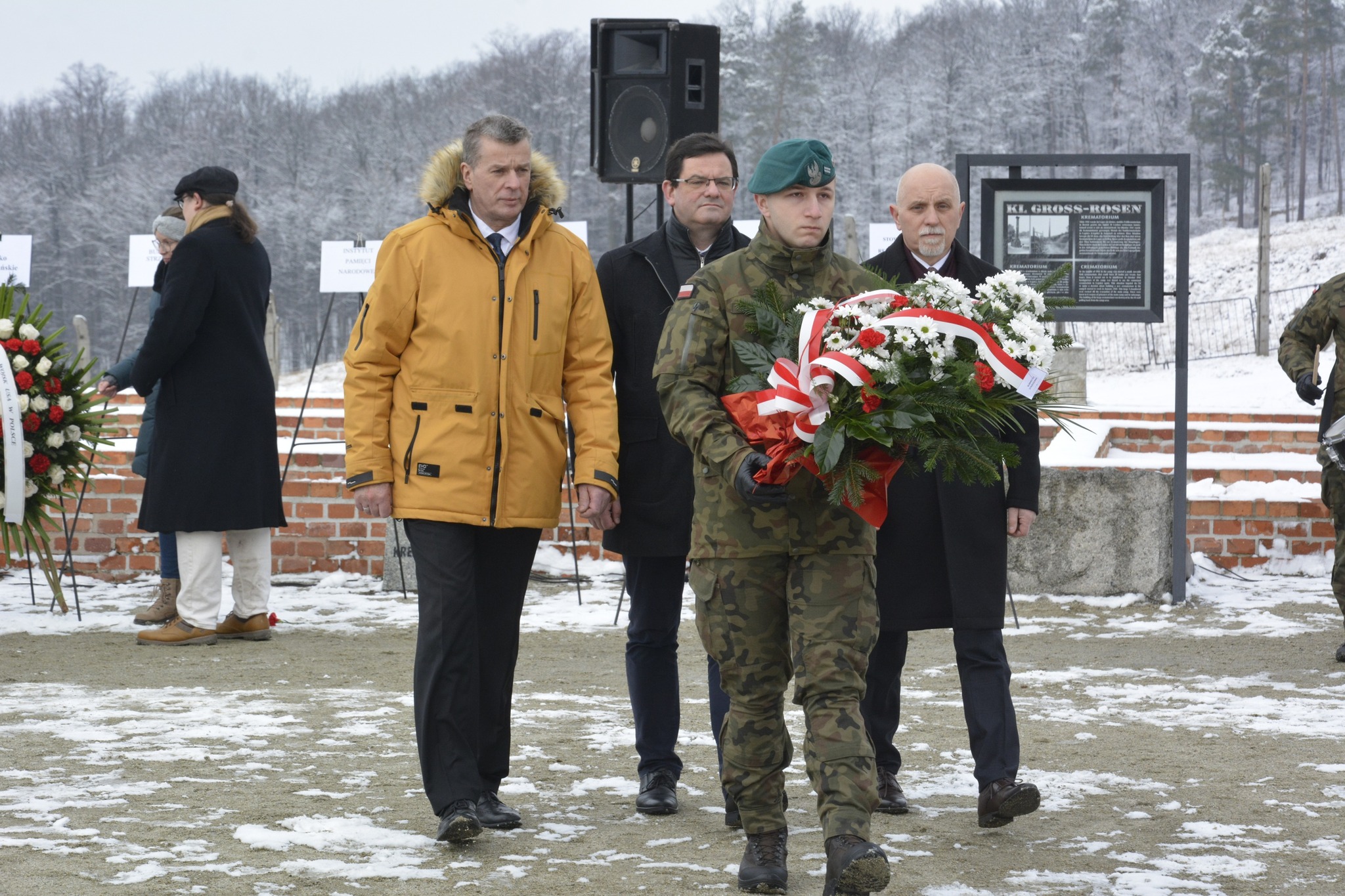Stojąc dziś w tym szczególnym miejscu, na terenie dawnego niemieckiego nazistowskiego obozu koncentracyjnego Gross-Rosen, oddajemy hołd ofiarom marszów śmierci. Ludziom, którzy w obliczu niewyobrażalnego cierpienia i bezwzględnego okrucieństwa zmuszeni byli do przejścia ostatniej tragicznej drogi [...]. Marsze te, pełne bólu, głodu, zimna i śmierci stały się symbolem bestialskiego okrucieństwa, ale też świadectwem ludzkiego cierpienia, które nie może zostać zapomniane. Dziś, wspominając te tragiczne wydarzenia, składamy hołd zarówno tym, którzy stracili życie na tych tragicznych szlakach, jak i tym, którzy cudem przetrwali, nosiąc przez życie brzemię traumy. Ich los jest dla nas przypomnieniem, jak kruche są fundamenty człowieczeństwa, gdy pozwalamy, by nienawiść i obojętność przejęły kontrolę nad naszym światem. Naszym obowiązkiem jest pamięć, ale także działanie. Musimy czynić wszystko, co w naszej mocy, aby tragedie takie, jak marsze śmierci, nigdy więcej się nie powtórzyły. Niech pamięć o ofiarach marszy śmierci będzie dla nas wiecznym ostrzeżeniem i zobowiązaniem do budowania świata, w którym takie zbrodnie nigdy nie znajdą miejsca.