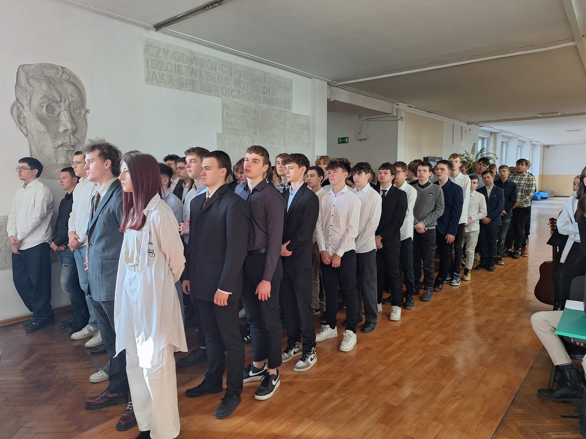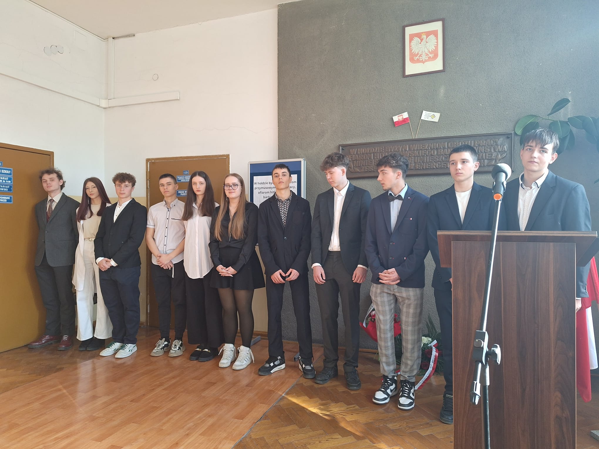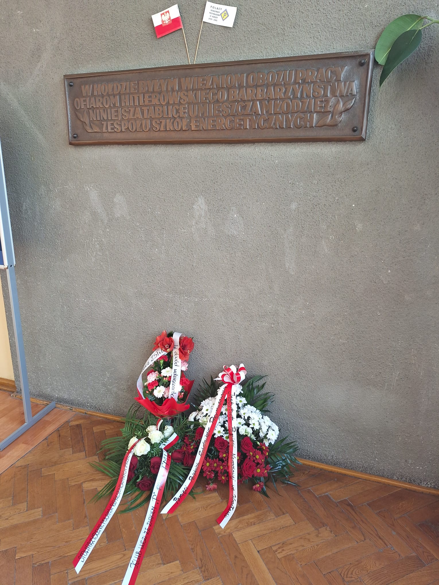 Okolicznościowa akademia w Zespole Szkół Teleinformatycznych i Elektronicznych zakończyła się złożeniem kwiatów przy pamiątkowej tablicy.
