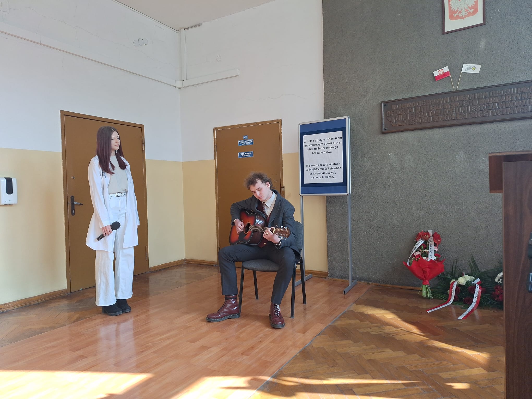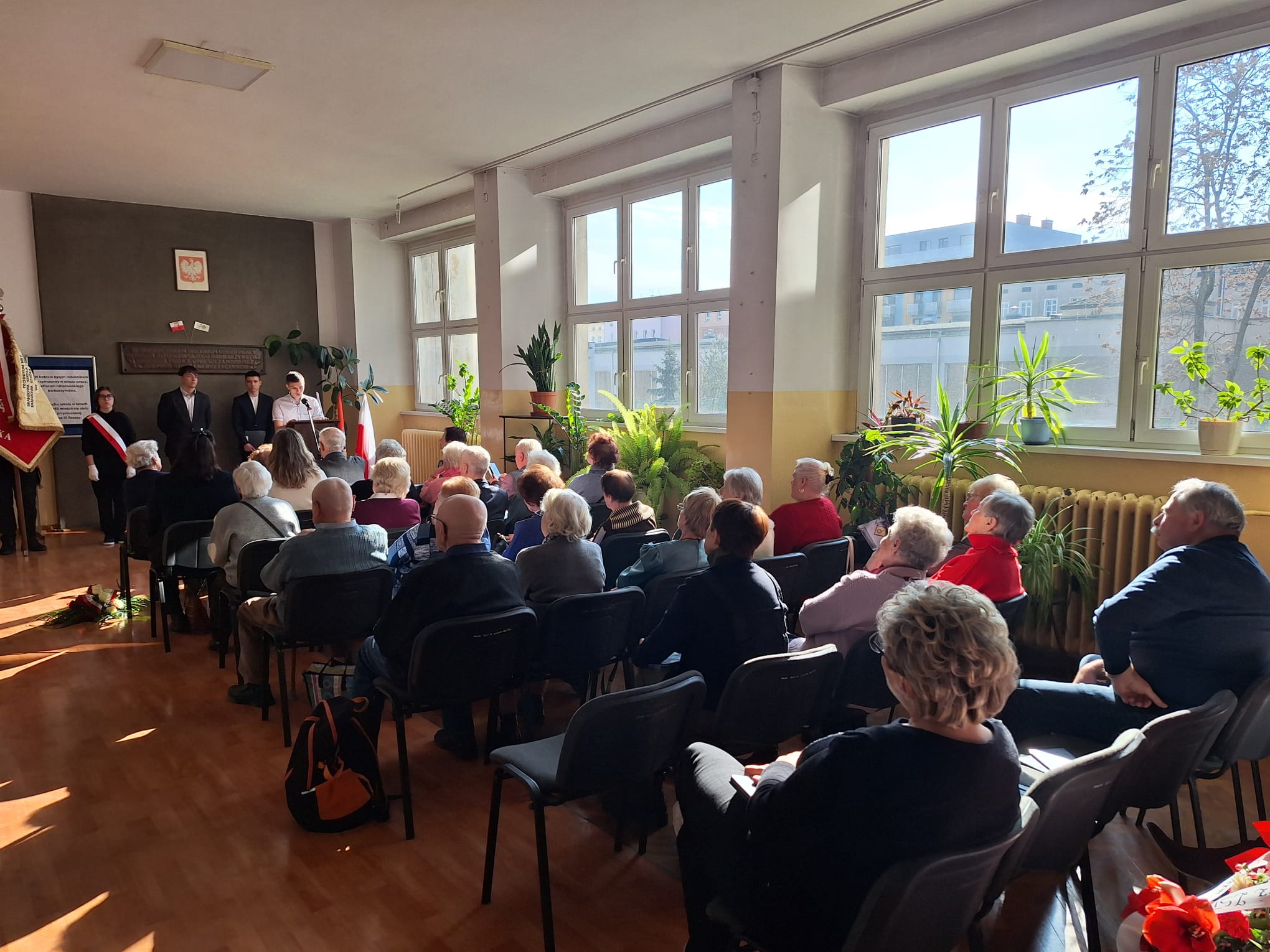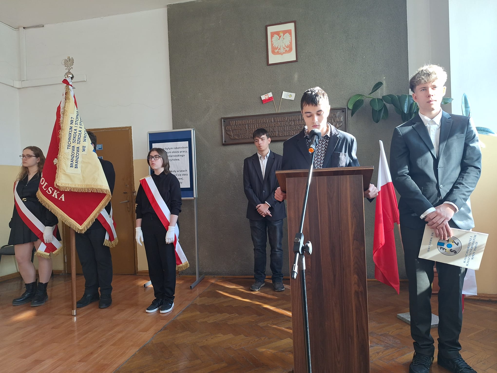 Okolicznościowa akademia w Zespole Szkół Teleinformatycznych i Elektronicznych zakończyła się złożeniem kwiatów przy pamiątkowej tablicy.