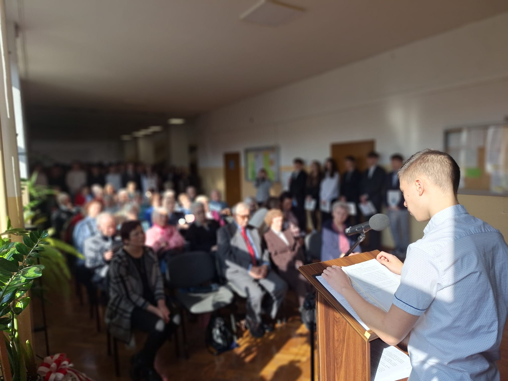 Uczniowie biorący udział w akademii. Fot. Kamilla Jasińska -