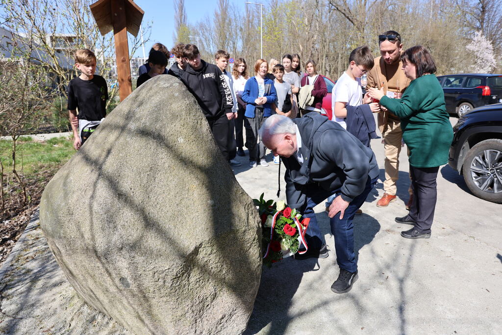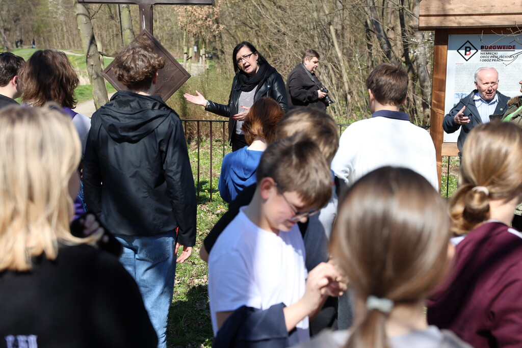 W czwartek 3 kwietnia na spotkanie na terenie byłego niemieckiego obozu przejściowego i obozu pracy Burgweide przybył m.in. dyrektor Oddziału IPN we Wrocławiu, dr hab. Kamil Dworaczek. Nim złożył przy pomniku kwiaty, to uczestniczącej w wydarzeniu młodzieży ze Szkoły Podstawowej nr 40 na wrocławskich Sołtysowicach opowiedział krótko o obozie oraz o potrzebie kultywowania pamięci o ofiarach. Swoją wojenną historię przedstawił Zygmunt Pacych, a Kamilla Jasińska opowiedziała o okolicznościach, w jakich po 55 latach istnienia pomnik ofiar obozu Burgweide zmienił w 2023 roku swoje miejsce i trafił na teren poobozowy. Następnie wszyscy zebrani, w tym także delegacja Towarzystwa Miłośników Wrocławia oraz Centrum Historii Zajezdnia, udali się do Parku Sołtysowickiego, gdzie znajduję się krzyż upamiętniający ofiary obozu Burgweide. Tam także złożono kwiaty i zapalono znicze [więcej o przeniesieniu pomnika TUTAJ, a o nadaniu nazwy skwer Ofiar Obozu Burgweide TUTAJ].
