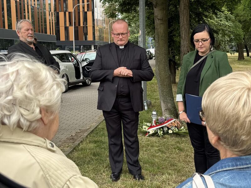 W uroczystości udział wzięły osoby represjonowane przez III Rzeszę i członkowie Klubu Ludzi ze Znakiem „P”, radny Sejmiku Damian Mrozek, a także przedstawiciel Zarządu Zieleni Miejskiej. Zgromadzeni odmówili modlitwę pod przewodnictwem księdza dr. Adama Szpotańskiego z Oddziałowego Biura Badań Historycznych IPN we Wrocławiu. Złożono też kwiaty, zapalono też znicze. O historii tego miejsce opowiedziała Kamilla Jasińska, Oddziałowego Biura Edukacji Narodowej IPN we Wrocławiu - pomysłodawczyni postawiania tablicy.