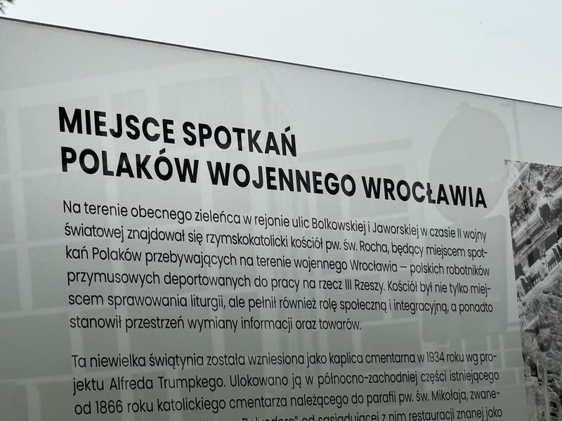 Na terenie obecnego zieleńca w rejonie 𝘂𝗹𝗶𝗰 𝗕𝗼𝗹𝗸𝗼𝘄𝘀𝗸𝗶𝗲𝗷 𝗶 𝗝𝗮𝘄𝗼𝗿𝘀𝗸𝗶𝗲𝗷 𝘄𝗲 𝗪𝗿𝗼𝗰ł𝗮𝘄𝗶𝘂 w czasie II wojny światowej znajdował się rzymskokatolicki kościół pw. św. Rocha, będący miejscem spotkań Polaków przebywających na terenie wojennego Wrocławia – polskich robotników przymusowych deportowanych do pracy na rzecz III Rzeszy.