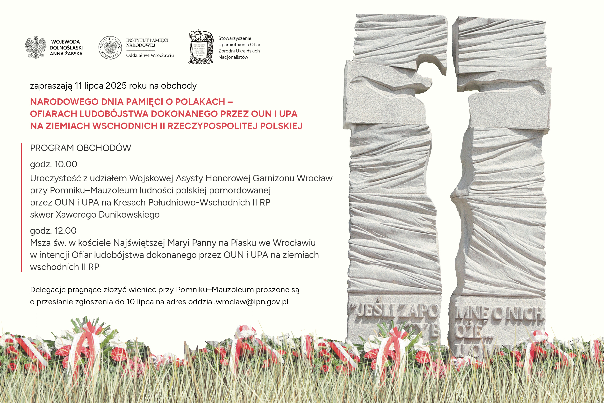 Zaproszenie na obchody Narodowego Dnia Pamięci o Polakach – ofiarach ludobójstwa dokonanego przez OUN i UPA na ziemiach wschodnich II Rzeczypospolitej – Wrocław, 11 lipca 2025