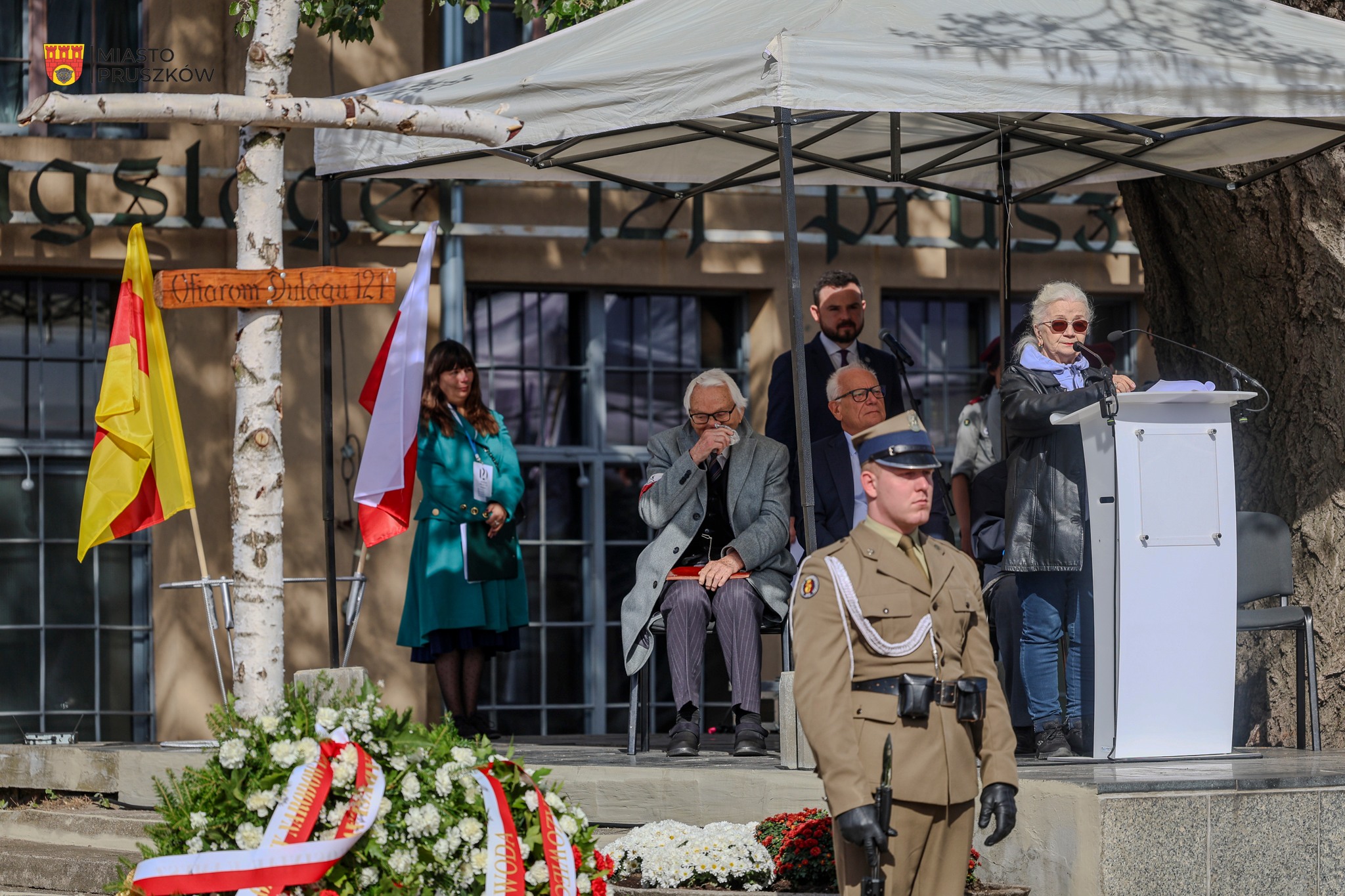 W dalszej części uroczystości głos zabrała reprezentująca prezesa Instytutu Pamięci Narodowej Kamilla Jasińska, zastępca dyrektora Oddziału IPN we Wrocławiu. Mówiąc krótko o tym, że cywilna ludność powstańczej Warszawy doświadczyla m.in. okropieństwa ludobójstwa dokonanego przez Niemców na warszawskiej Woli, zwróciła też uwagę na wygnanie: