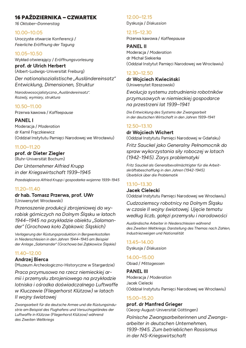 Międzynarodowa konferencja naukowa „Praca przymusowa w gospodarce III Rzeszy podczas II wojny światowej ...” - Wrocław, 16–17 października 2025 -