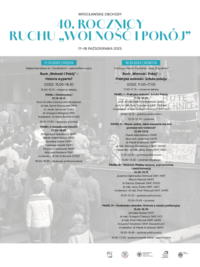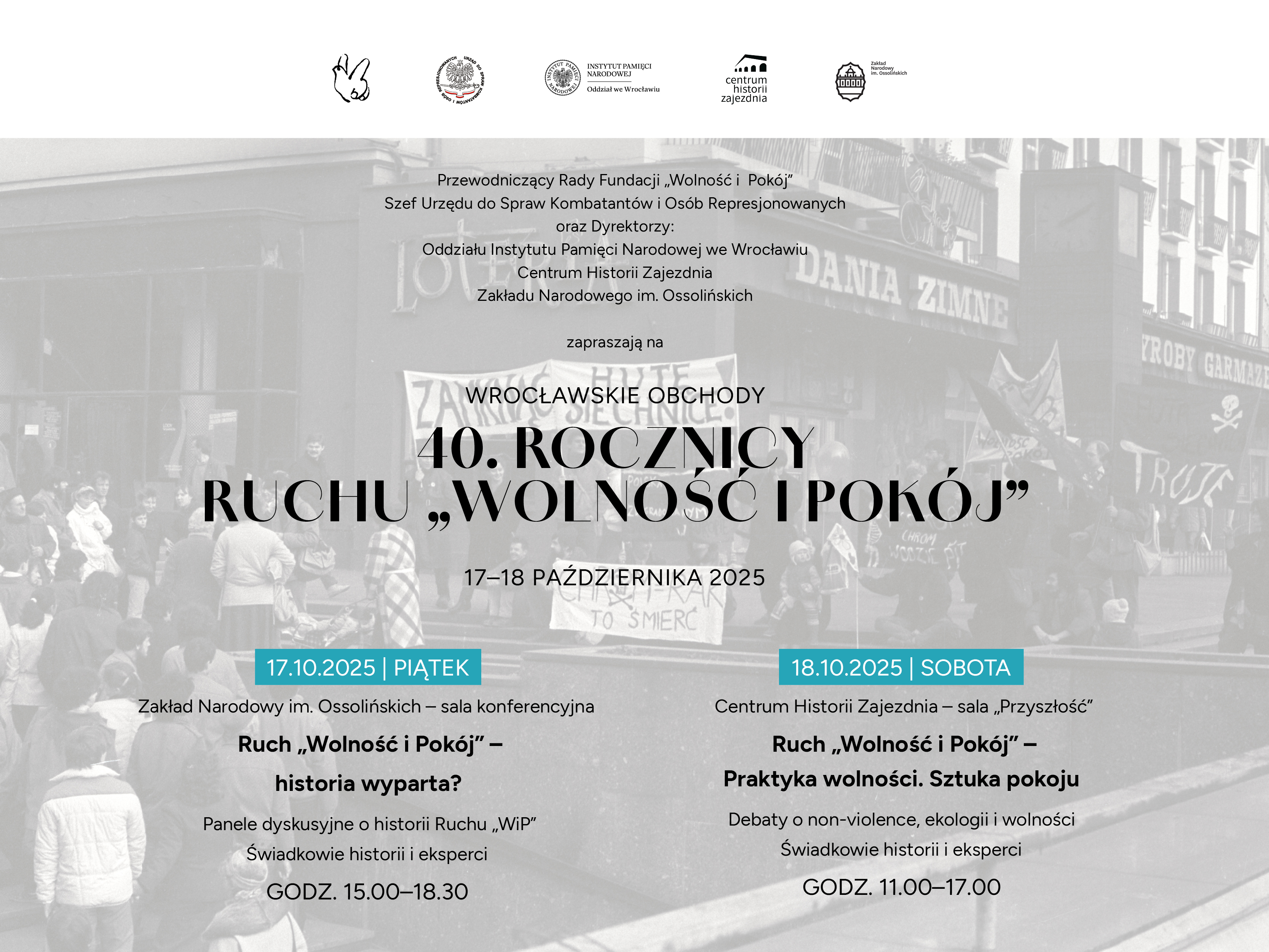 Dwudniowe obchody odbędą się 17 i 18 października i wezmą w nich udział świadkowie historii oraz eksperci. W piątek, 17 października w godz. 15.00–18.30 w Zakładzie Narodowym im. Ossolińskich odbędą się panele dyskusyjne poświęcone historii Ruchu „Wolność i Pokój”, natomiast w sobotę 18 października w godz. 11.00–17.00 w programie znalazły się debaty o non-violence, ekologii i wolności.