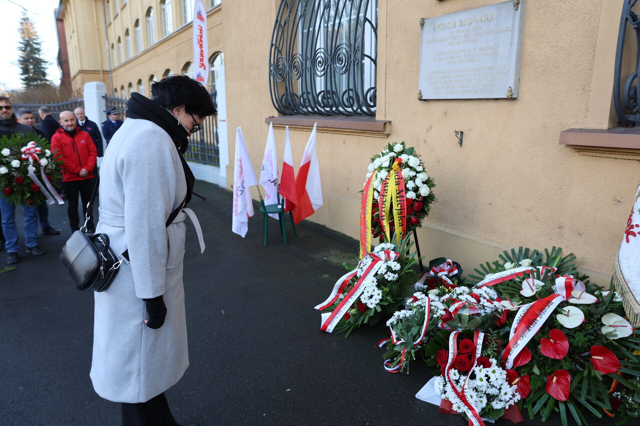 Podczas uroczystości złożono wiązanki kwiatów pod dwiema tablicami pamięci — pierwszą upamiętniającą Piotra Bednarza, patrona dolnośląskiej Solidarności, oraz drugą poświęconą tragicznym wydarzeniom z 1981 roku. W imieniu Instytutu Pamięci Narodowej we Wrocławiu kwiaty złożyła Kamilla Jasińska, zastępca dyrektora oddziału.
