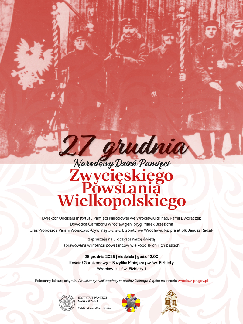 W prowadzonej przez Instytut Pamięci Narodowej ewidencji grobów weteranów walk o wolność i niepodległość Polski znajduje się w tej chwili ponad 30 grobów powstańców wielkopolskich spoczywających na dolnośląskich nekropoliach. Sylwetki tych powstańców przybliżymy w artykule Powstańcy wielkopolscy w stolicy Dolnego Śląska, który na stronie wroclaw.ipn.gov.pl ukaże się 26 grudnia, w przededniu Narodowego Dnia Pamięci Zwycięskiego Powstania Wielkopolskiego. Groby ujętych w ewidencji powstańców odwiedzą pracownicy Oddziału Instytutu Pamięci Narodowej we Wrocławiu.