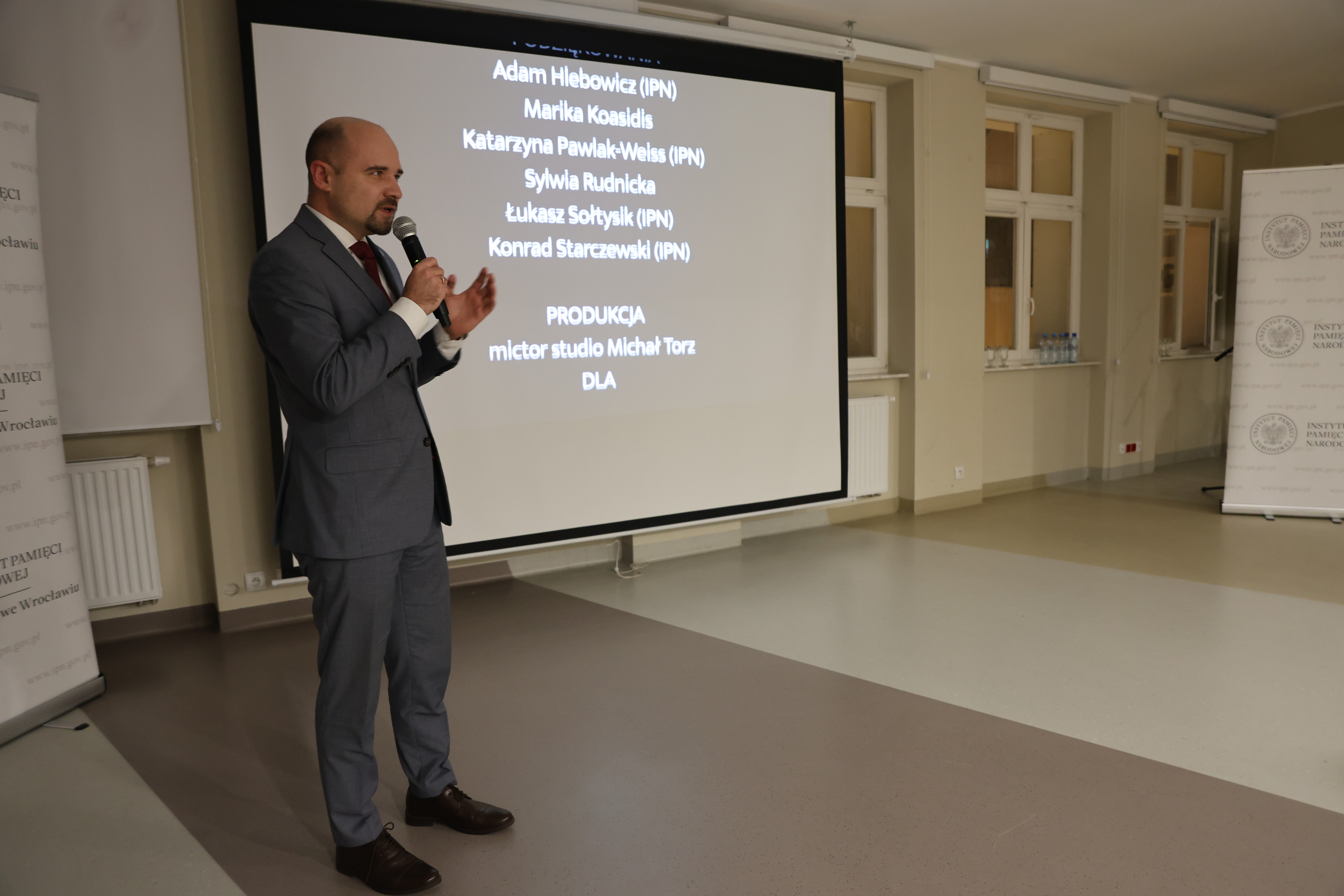 na zdjęciu dyrektor IPN Wrocław Kamil Dworaczek przy mównicy