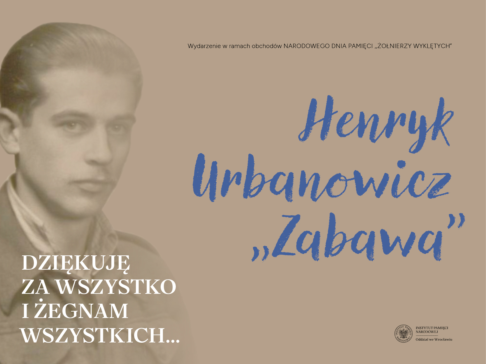 We wtorek 3 marca zapraszamy na godz. 17.00 do Przystanku Historia we Wrocławiu na premierę filmu dokumentalnego oraz promocję książki o Henryku Urbanowiczu ps. „Zabawa”, „Szczaw”. Gdyby nie wyrok śmierci, który wykonano 6 maja 1949 r. w więzieniu przy ul. Kleczkowskiej, w tym roku mógłby obchodzić setną rocznicę urodzin. Kim był ten pochodzący z Wileńszczyzny i związany z powojennym Wrocławiem młodzieniec, walczący u boku „Szczerbca” i „Łupaszki”?