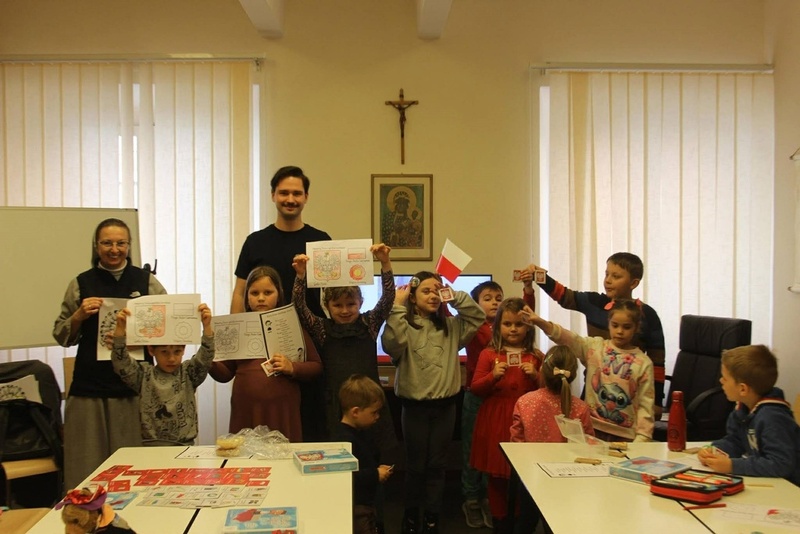 W sobotę dzieci i młodzież z Katolickiej Polskiej Szkole Podstawowej im. Jana Pawła II wzięły udział w warsztatach o polskich symbolach narodowych, a także poznały historię Danuty Siedzikówny, ps. Inka, Dywizjonu 303 oraz żołnierzy gen. Władysława Andersa (w tym słynnego Misia Wojtka), które przeprowadzili ks. dr Adam Szpotański (OBBH Wrocław) oraz Jakub Horbacz (OBEN Wrocław).