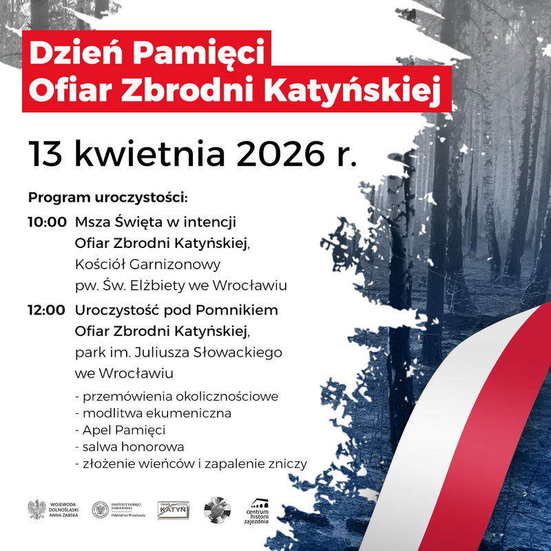 Zaproszenie na wojewódzkie uroczystości Dnia Pamięci Ofiar Zbrodni Katyńskiej we Wrocławiu - 13 kwietnia 2026