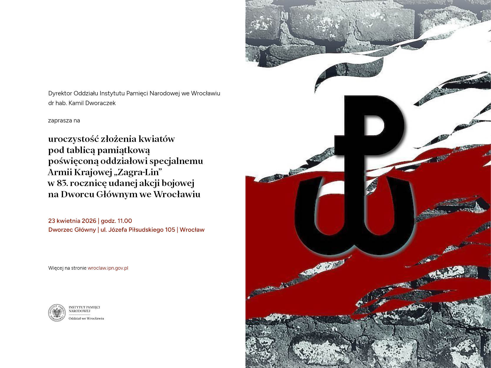 83. rocznica zamachu bombowego na pociąg z żołnierzami Wehrmachtu stojący na Dworcu Głównym we Wrocławiu - Wrocław, 23 kwietnia 2026
