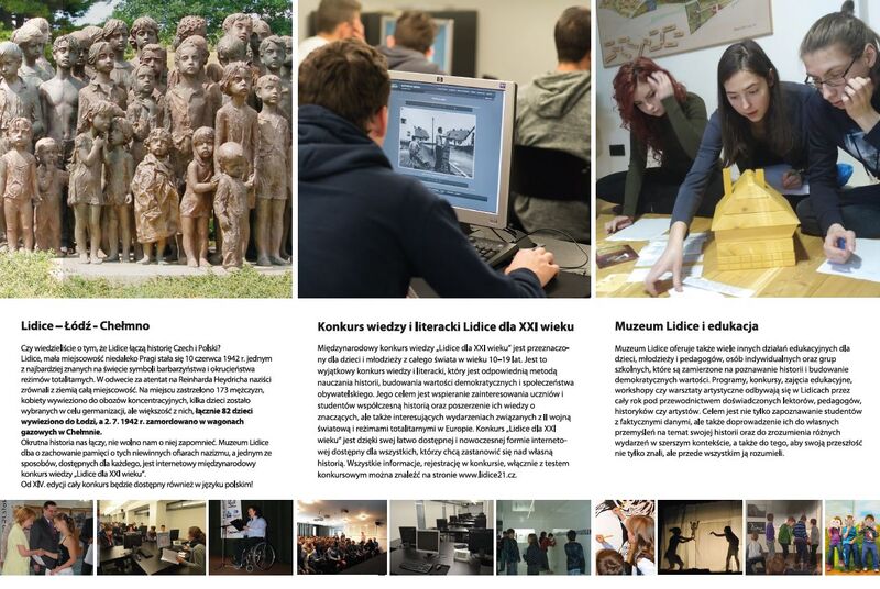 Lidice, mała miejscowość niedaleko Pragi stała się 10 czerwca 1942 r. jednym z najbardziej znanych na świecie symboli barbarzyństwa i okrucieństwa reżimów totalitarnych. W odwecie za zamach na Reinharda Heydricha naziści zrównali z ziemią całą miejscowość. Na miejscu zastrzelono 173 mężczyzn, kobiety wywieziono do obozów koncentracyjnych, kilka dzieci zostało wybranych w celu germanizacji, ale większość z nich, łącznie 82 dzieci wywieziono do Łodzi, a 2. 7. 1942 r. zamordowano w wagonach gazowych w Chełmnie.