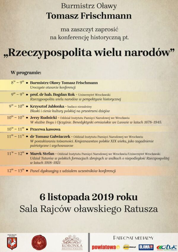 06/11/2019Konferencja historyczna „Rzeczypospolita wielu narodów” – Oława 6 listopada 2019 r.
