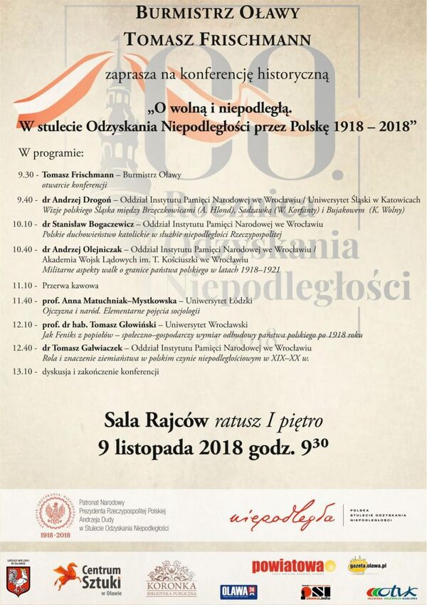 09/11/2018Wystawa „Oławianie w polskim czynie niepodległościowym. Pamięć – Tradycja – Tożsamość” i konferencja naukowa – Oława, 9 listopada 2018